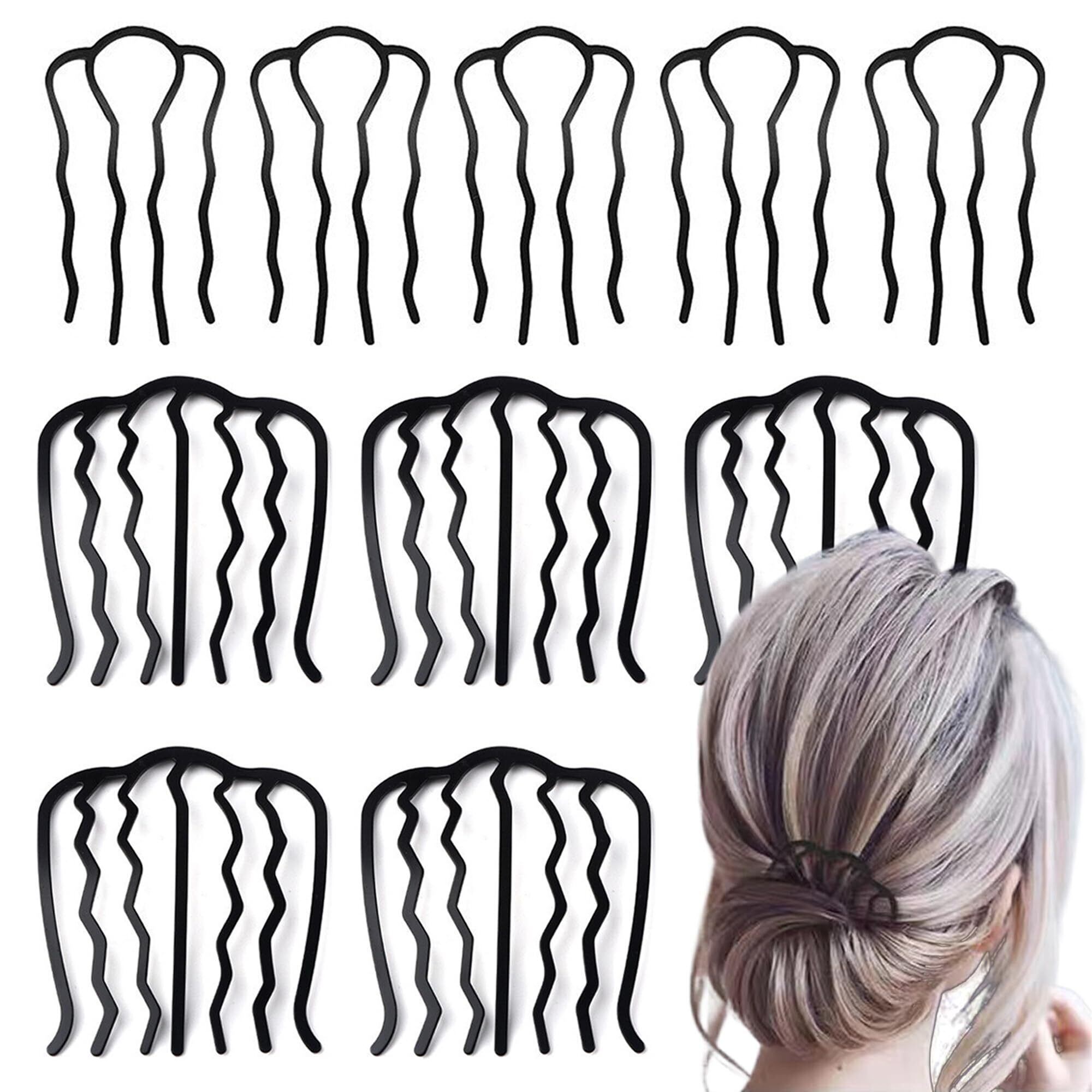 DELUXEFOX 夜会巻きコーム 10個セット ヘアアクセサリー 夜会巻き インナーヘアアクセ インナーヘアアクセ 髪飾り まとめ髪 髪留め 盛り髪 お団子 簡単 ブラック 結婚式 卒業式 入学式 宴会