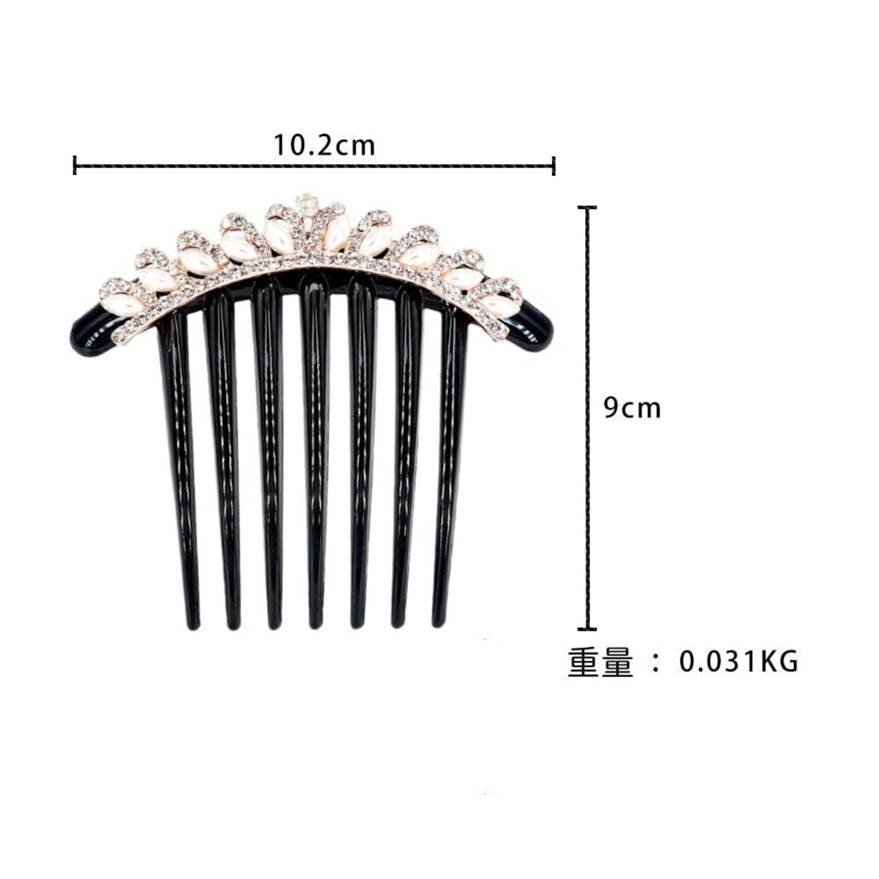 【高品質の素材】:ヘアコームは高品質なプラスチック素材で作られ、丈夫で耐久性があり、破損しにくく、長時間使用できます。パールとラインストーンはキラキラとして、しっかりとヘアコームに埋め込まれています。