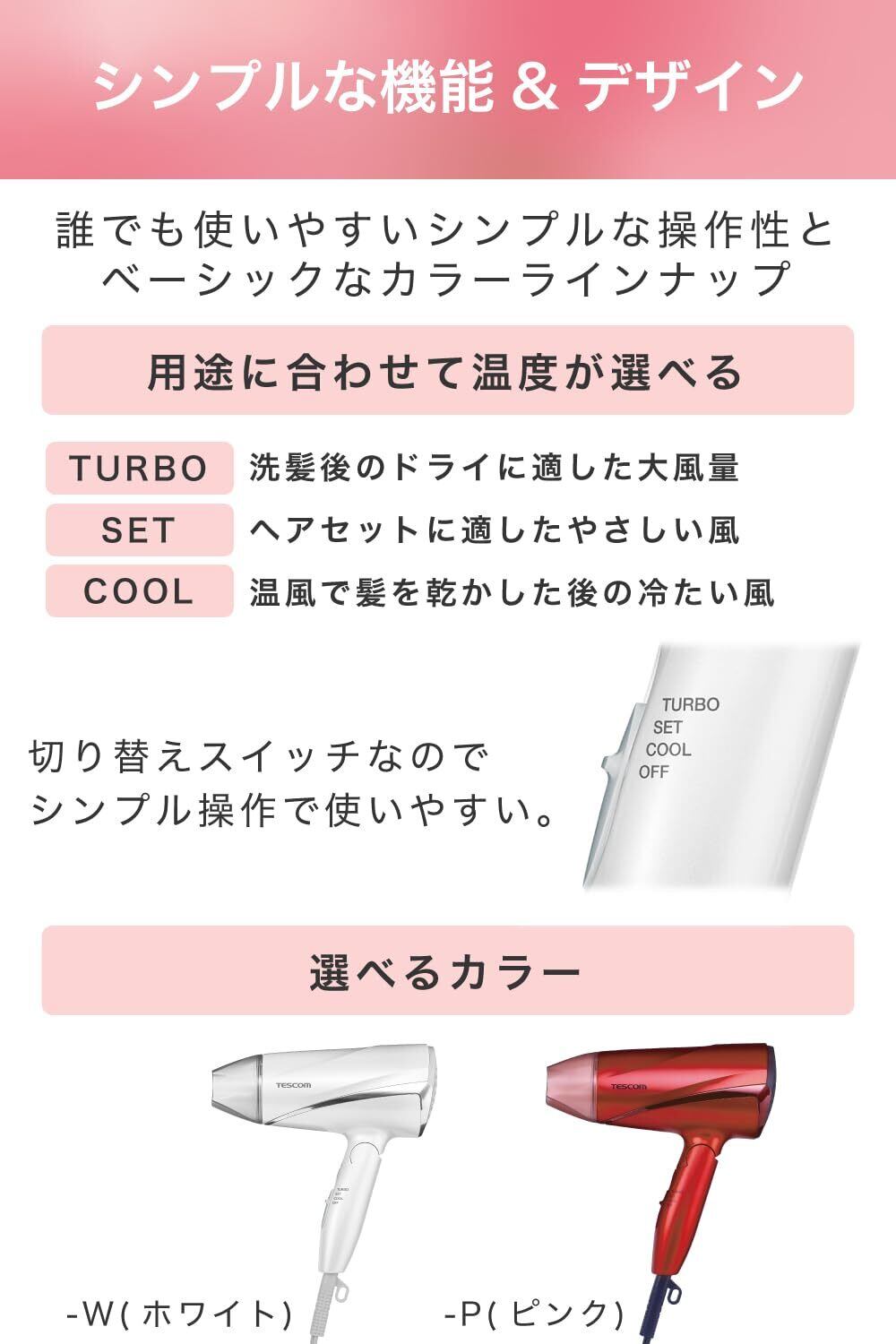 テスコム ヘアドライヤー マイナスイオン 折りたたみ 大風量 軽量 冷温風 ione ホワイト TD330B-W/E
