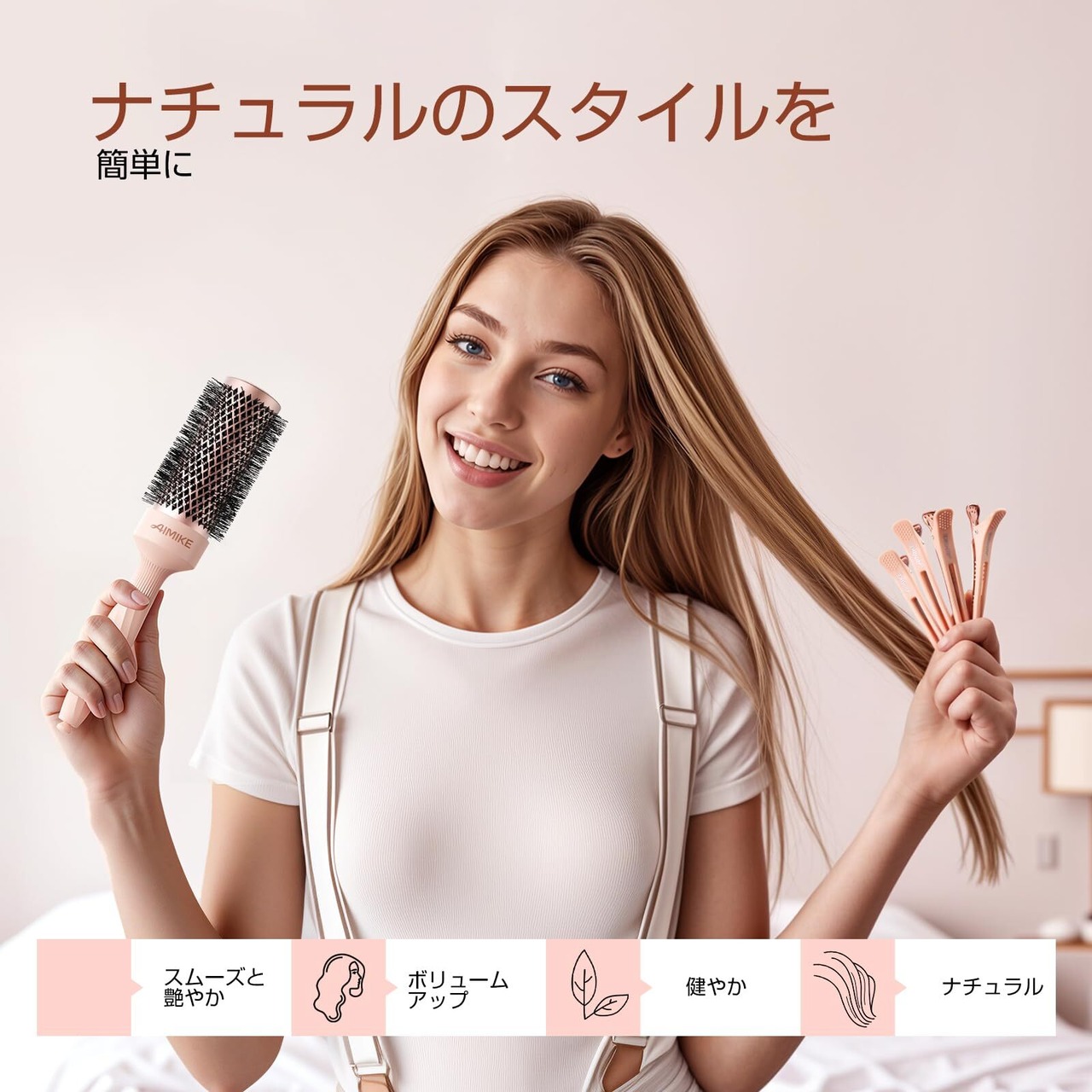 ✨【こだわりのスタイリングブラシ】ブローの時間を短縮し、髪をストレートにしたりカールしたりでき、髪を滑らかにして形を整え、気軽に毎日ご自宅でサロン級の仕上がりを再現したい人に。こだわりの色味もパッケージデザインも洗練されていて、4本のヘアクリップも付属し、プレゼントとして贈る相手きっと嬉しくなります。AIMIKE ROSE LUXE ブローブラシで、これからのもっと簡単で楽しいヘアスタイリングを始めましょう。