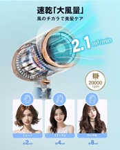 【1500W大風量・速乾】僅か数分間以内で、根元から髪を素早く乾燥させることができます。夏の暑い時期も、快適に髪を乾かせます。バランスのよい風で、速く乾かし、美しく仕上がります。1500W大風量がある一方、電気の消費量が低くて、電気代が節約できます。
