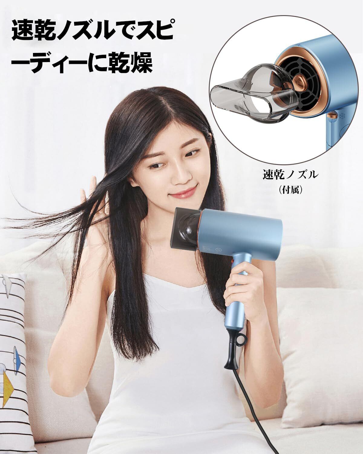 ドライヤー 大風量【2025年春夏限定 美容師監修】速乾 ヘアドライヤー 2000万 マイナスイオン 静電気抑制 57℃恒温 3段階調整 過熱防止 コンパクト 折り畳み 収納ホルダー付属 速乾ノズル ヘアサロン 旅行 1500w ブルー