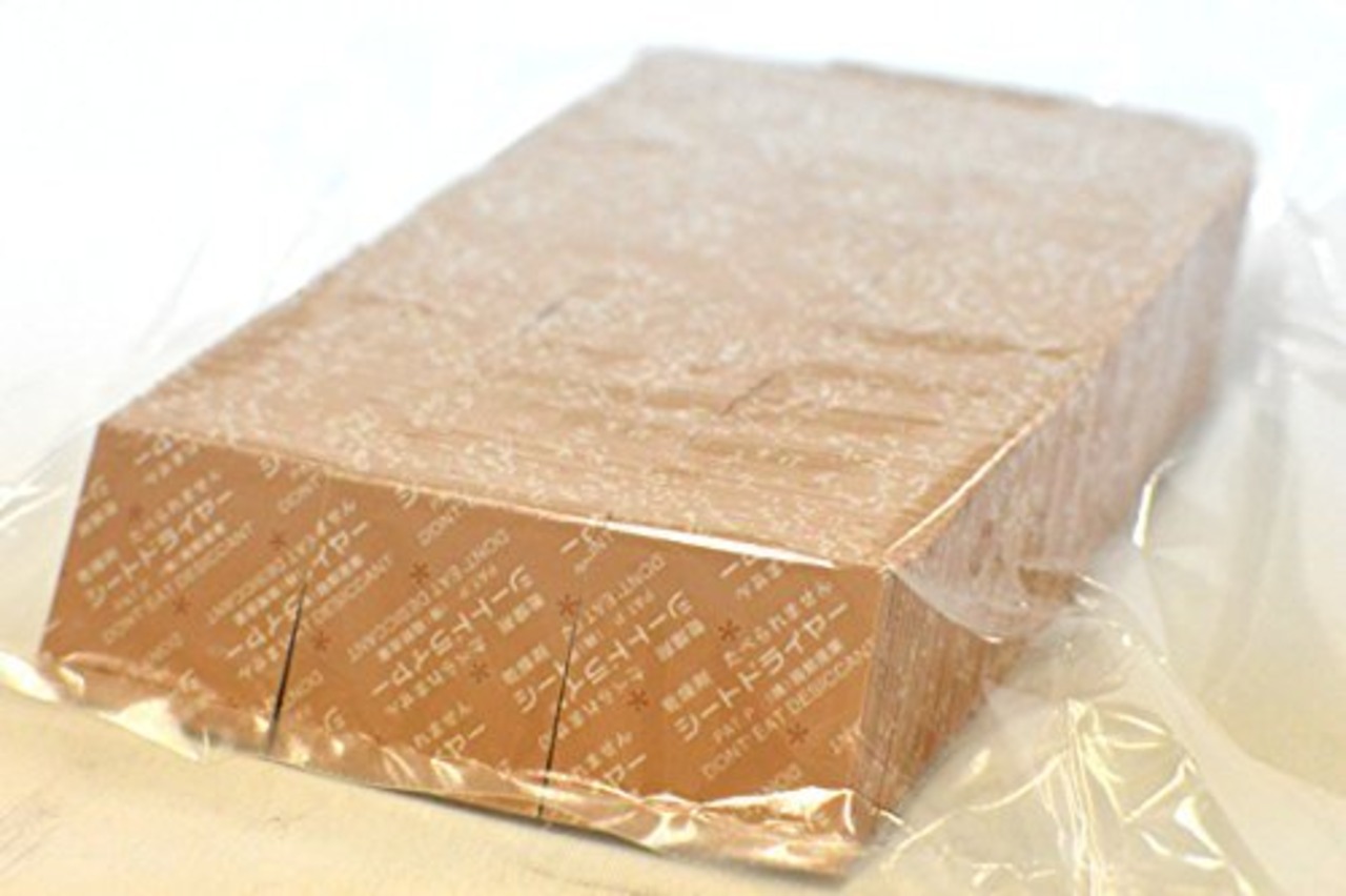 吸湿以外に誤食防止やクッキーなど割れやすいお菓子の台紙にもなる シート状乾燥剤です。