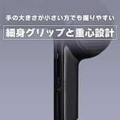 スタイリストへのリサーチを重ねて開発した本体形状により、手の小さい方でも握りやすい細身グリップや