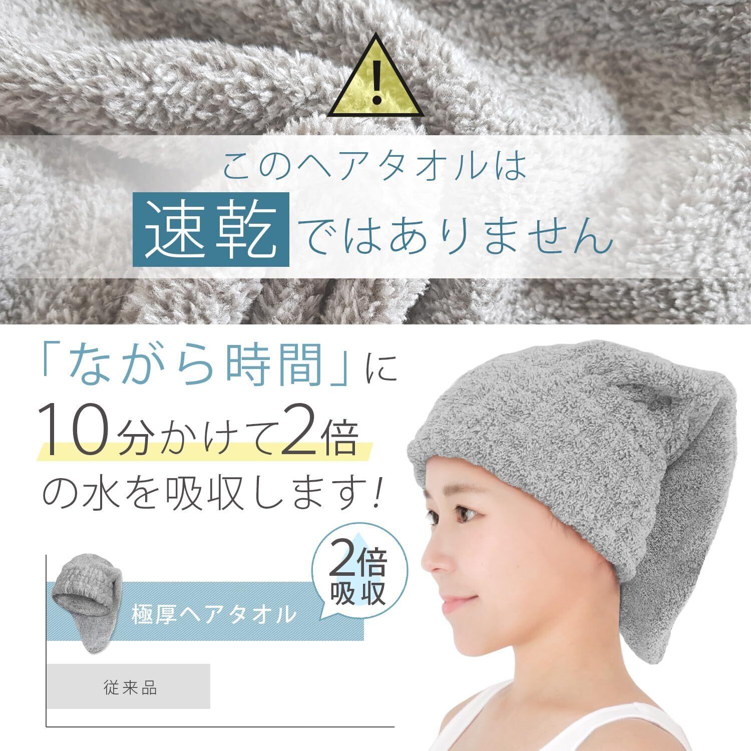 ・ながら時間10分かけて約2倍の水分を吸収できる特殊なタオル生地です。