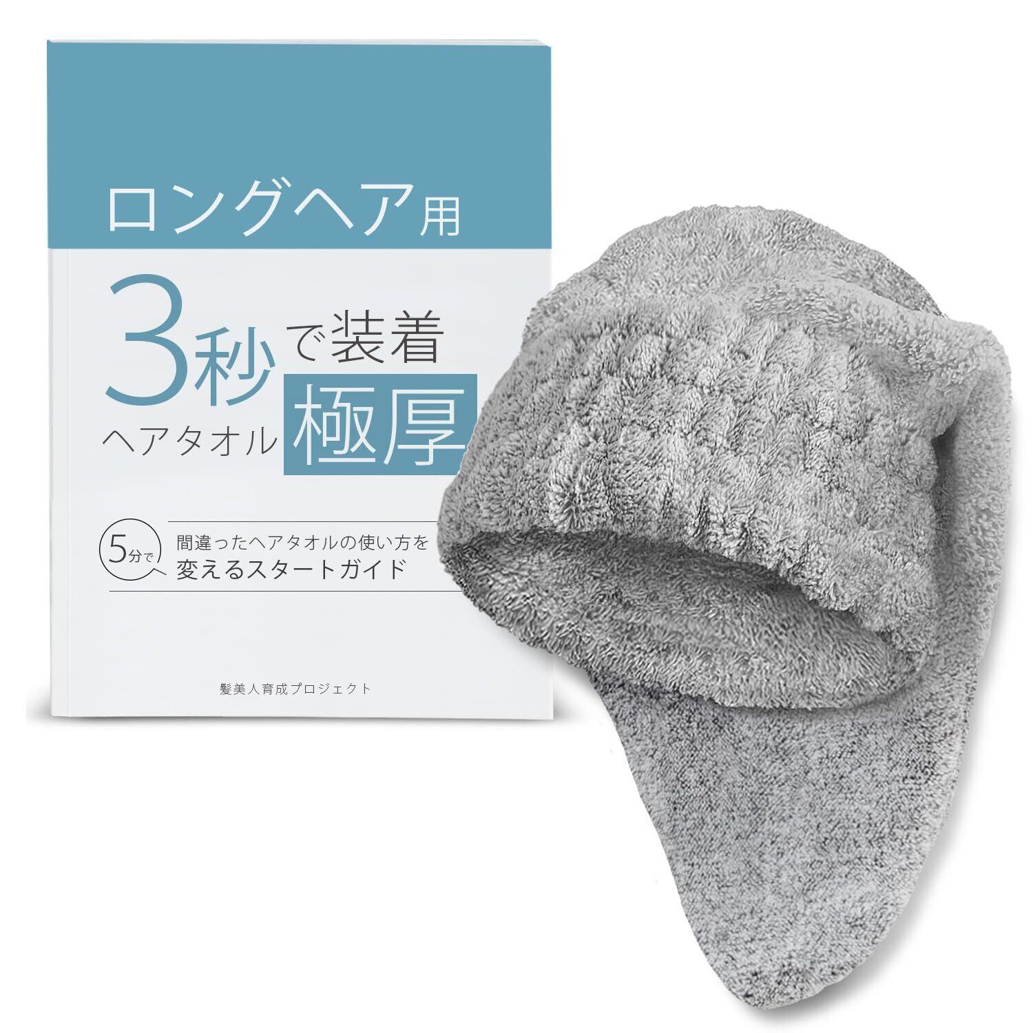 仕上げのドライヤー時間を短縮する3秒で装着できる極厚ヘアタオル 時短 速乾 水分吸収 髪 ドライ 髪の毛 吸水 セミロング ロングヘア用 ながら時間