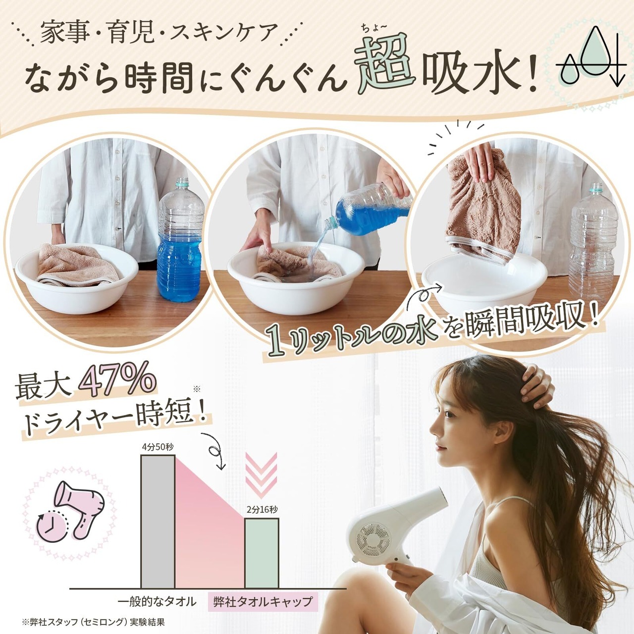 【かぶりっぱなしでOK!スキンケア・家事・育児のお手伝い】RALQのタオルキャップは全国のお母さん200名以上の声を元に生まれました。お子様のお世話、洗顔、ドライヤーと忙しいお風呂あがりをサポートします。