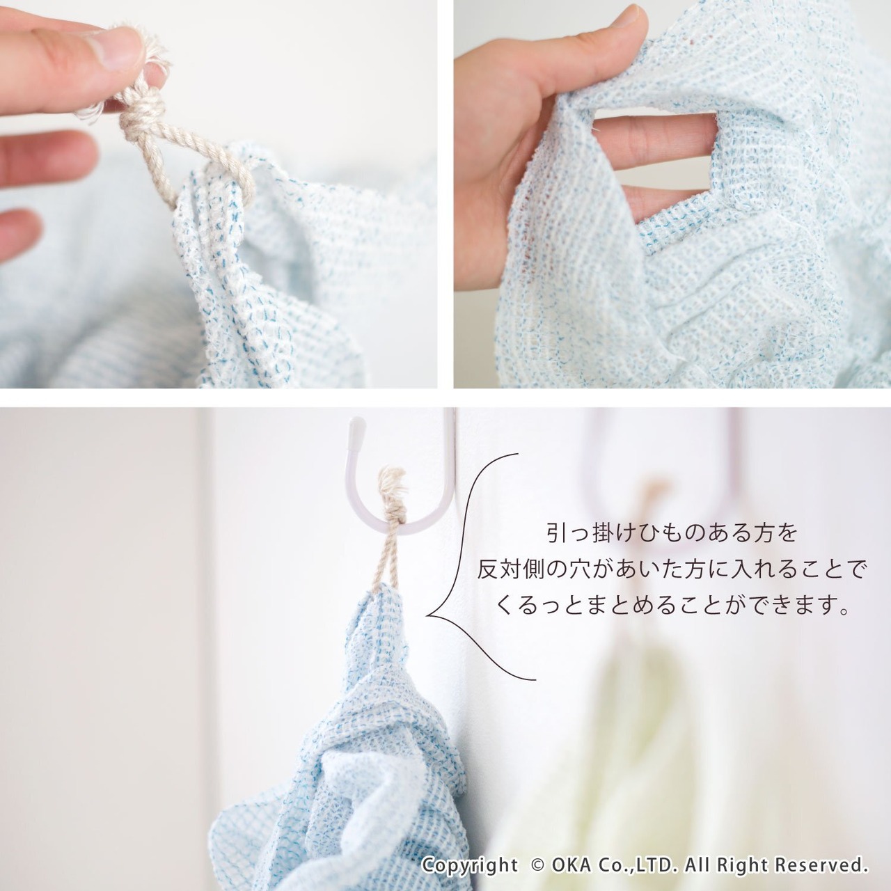クロスして編み込まれた生地によってたくさんの空気層ができ、ふわふわの泡立ちを実現。たっぷりの泡で心地よく洗えます。