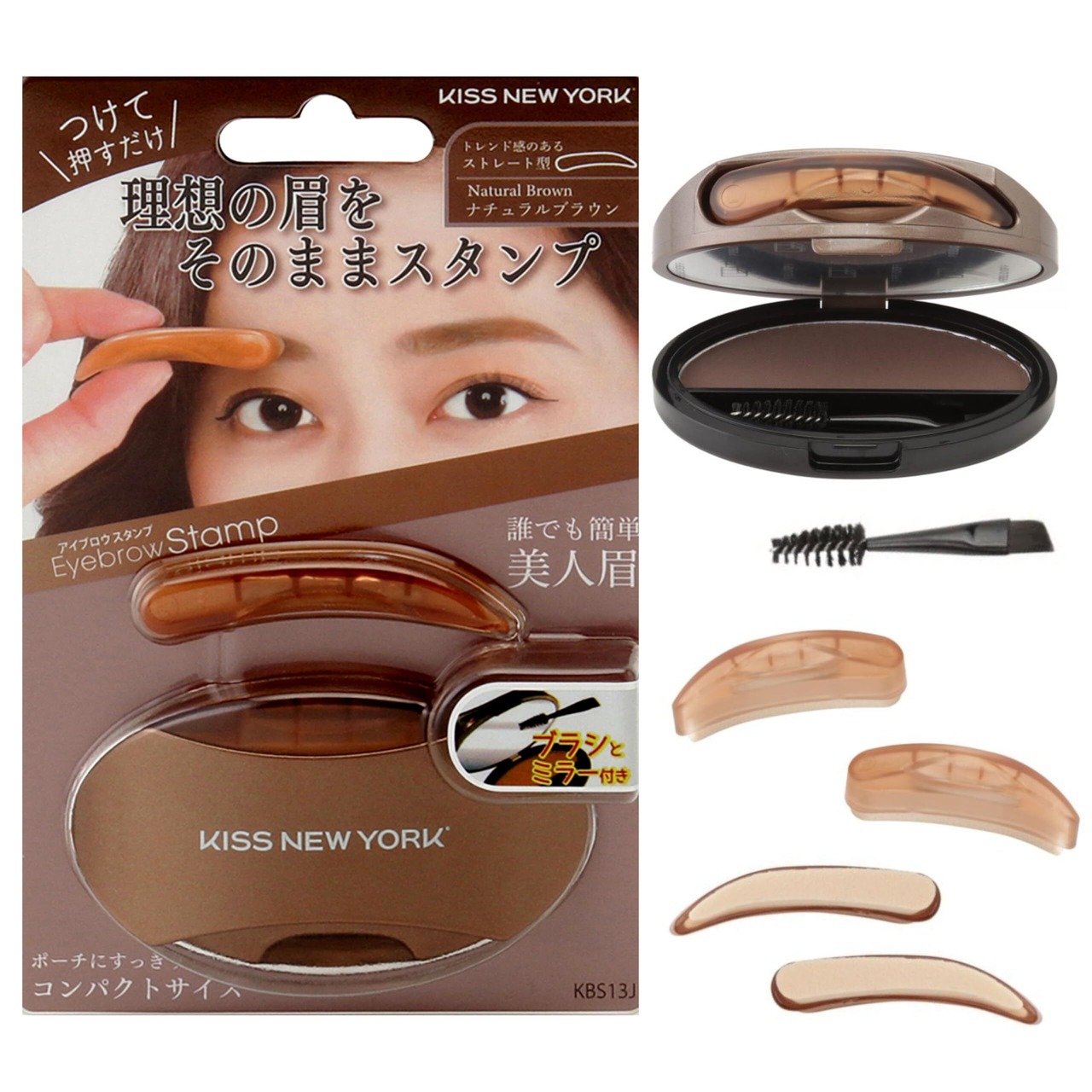 【キスニューヨーク 限定替えスポンジ付き】アイブロウスタンプ 眉スタンプ 眉毛スタンプ 眉ポン 眉メイク kissnewyork (ナチュラルブラウン, KBS13J(ストレート) テンプレート 型