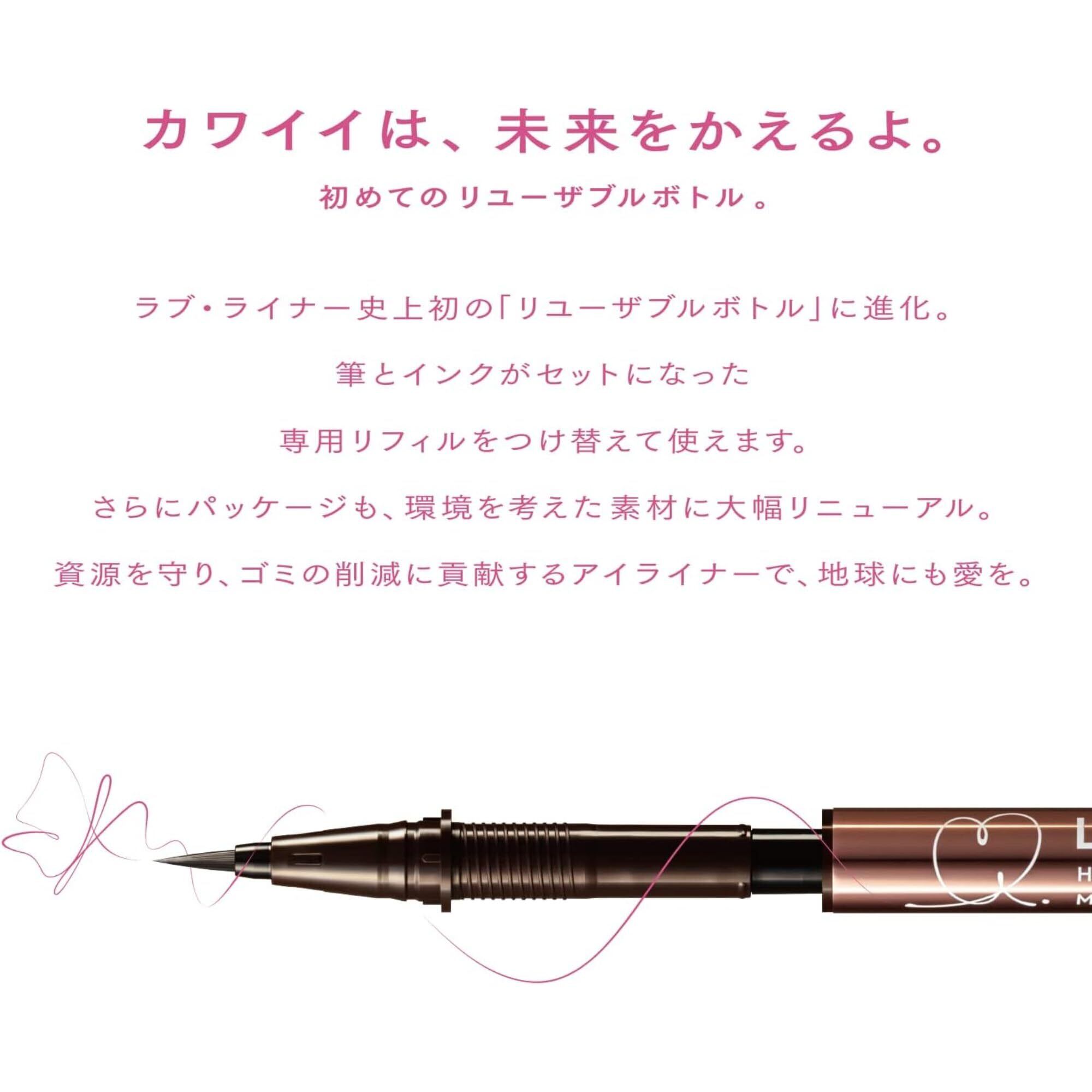 つけ替えができて繰り返し使える「リユーザブルボトル」に進化。資源を守り、ゴミの削減にも貢献するアイライナーで、地球にも愛を。