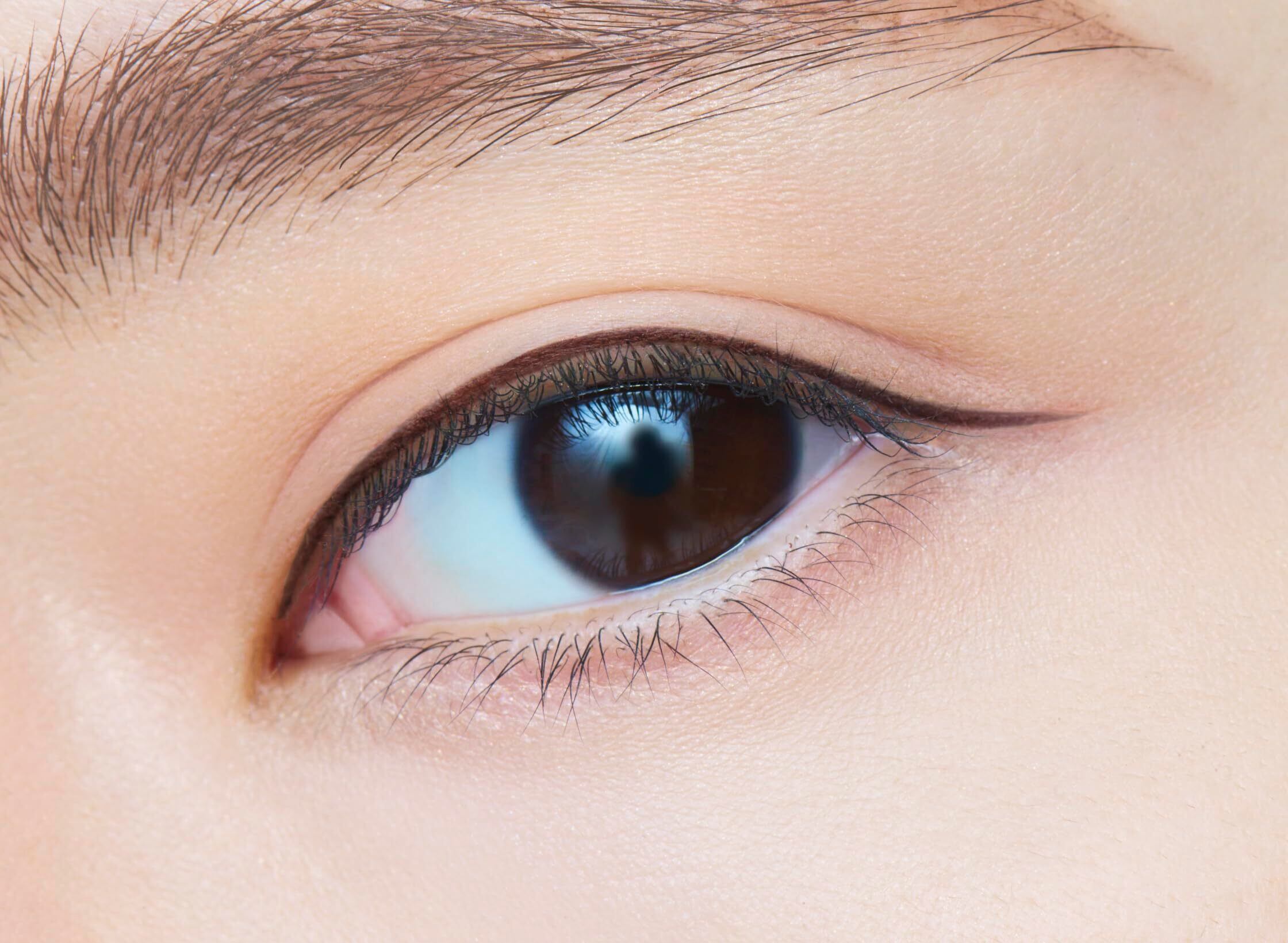 極細専用 ショート筆リキッド「短め5mm筆」を採用。筆先がブレにくいので、極細ラインもさっと簡単に描ける。撥水効果のある「フィルム」に変化するリキッドタイプだから皮脂、汗、涙、こすれからラインをしっかりガード。もちが良いのに、落とすときはお湯で簡単オフ。カラー:ダークな茶色 ブラックブラウン