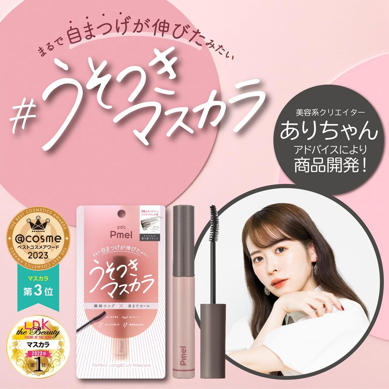 Pmel (ピメル) うそつきマスカラ パーフェクトロング&カールマスカラ 透け感ブラック ウォータープルーフ ロング カールキープ 下睫毛 マスカラ マスカラ下地