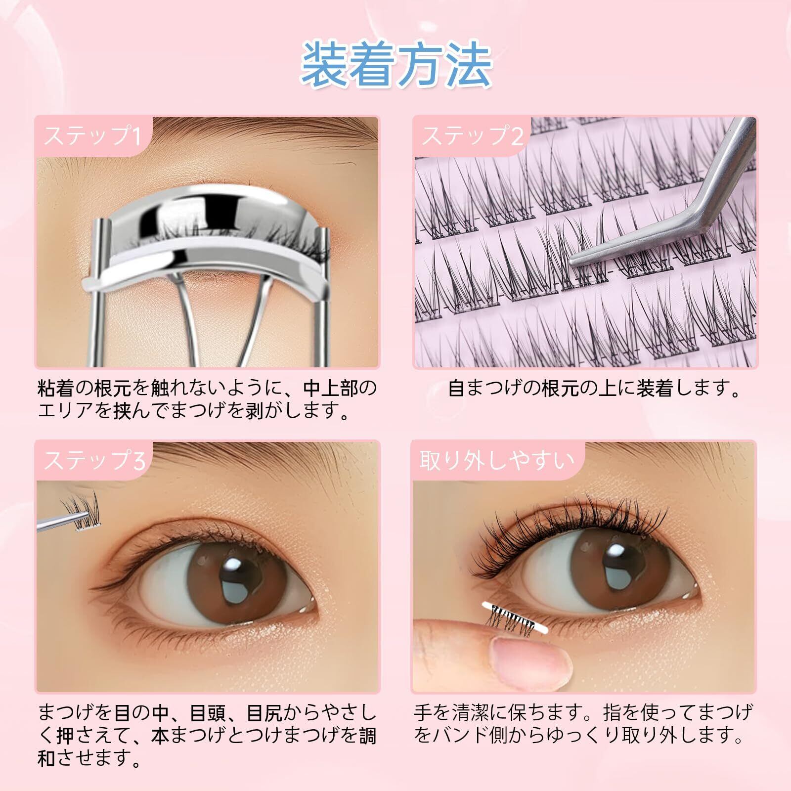 【接着剤不要 1秒装着】 いつもまつげに時間がかかります?1秒装着でき、メイク時間の短縮した自粘式つけまつげをぜひ試してみてください。接着剤を要らず、まつげを乗せるだけで簡単に仕上がります。初心者でも手軽にご利用いただけます。