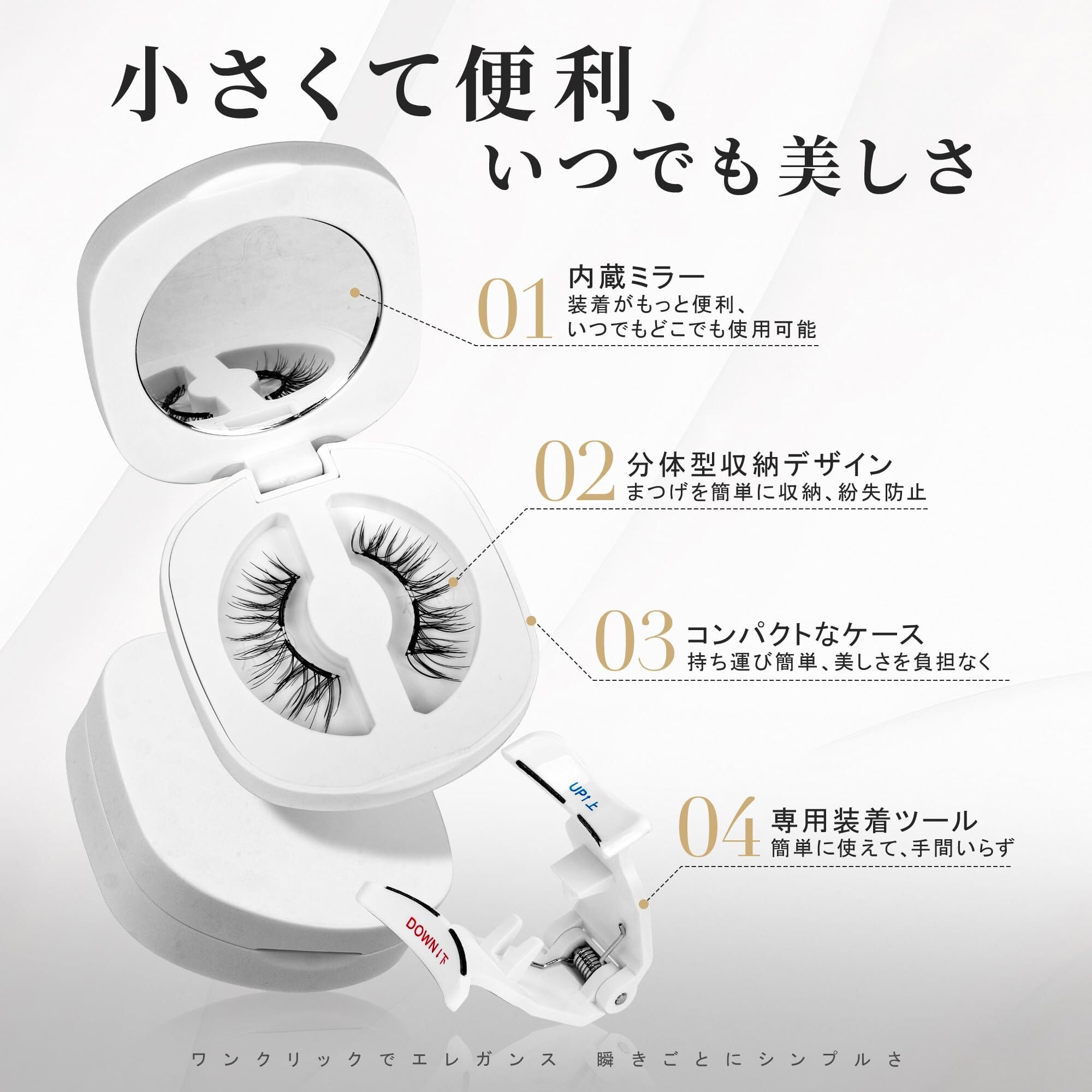 接着剤不要、どこでも簡単に装着:接着剤の刺激から解放され、自然で魅力的なまつげを手軽に作り出します。1回の購入で50回以上繰り返し使用可能。忙しい現代人にぴったりな、簡単で快適な使用感をお楽しみください