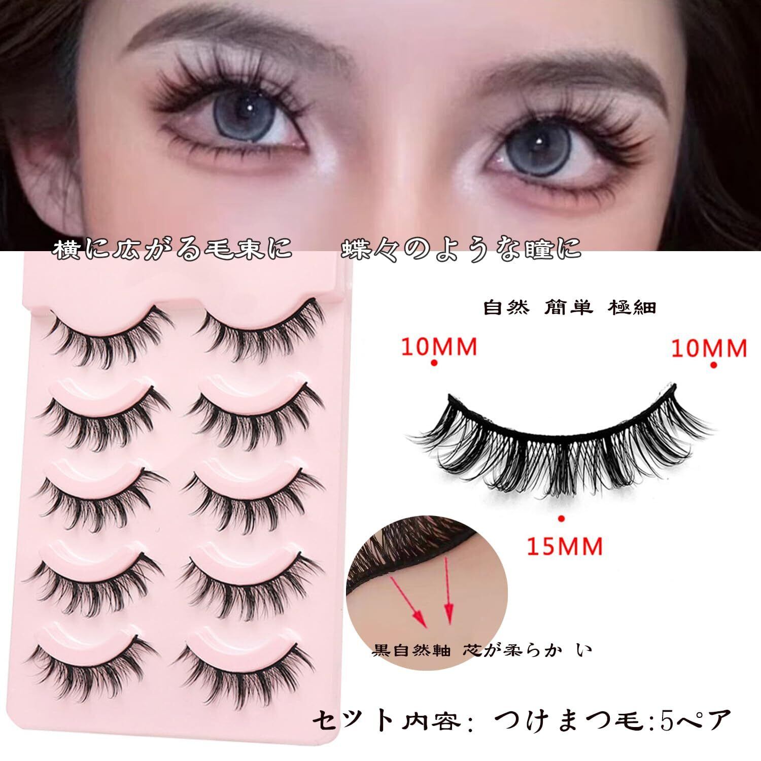 GRTUFOBA つけまつげ 上まつげ用 5ペア つけまつ毛 ナチュラル 黒自然軸 芯が柔らか い 超軽量 柔らかく 手作り 再利用可能 薄化粧 生活化粧