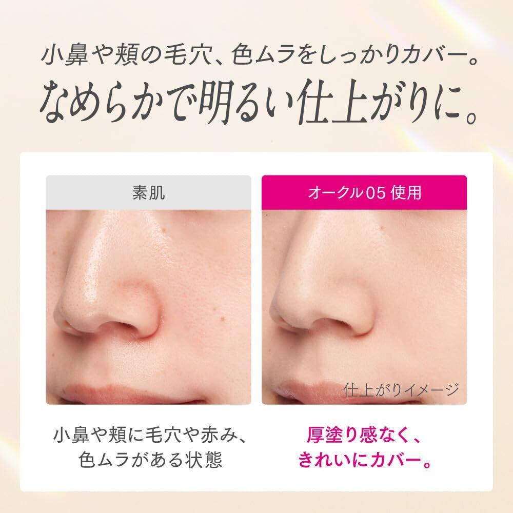 ひと塗りで、均一なヴェールが肌に溶けこむようにぴたっと密着。粉っぽさを感じないなめらかな仕上がりを叶えます。光を味方に肌に明るさを与え毛穴、色むら、くすみを自然にカバー。皮脂による不快なテカリやとれ・ヨレを防ぎ、明るい素肌質感が夕方まで続きます。