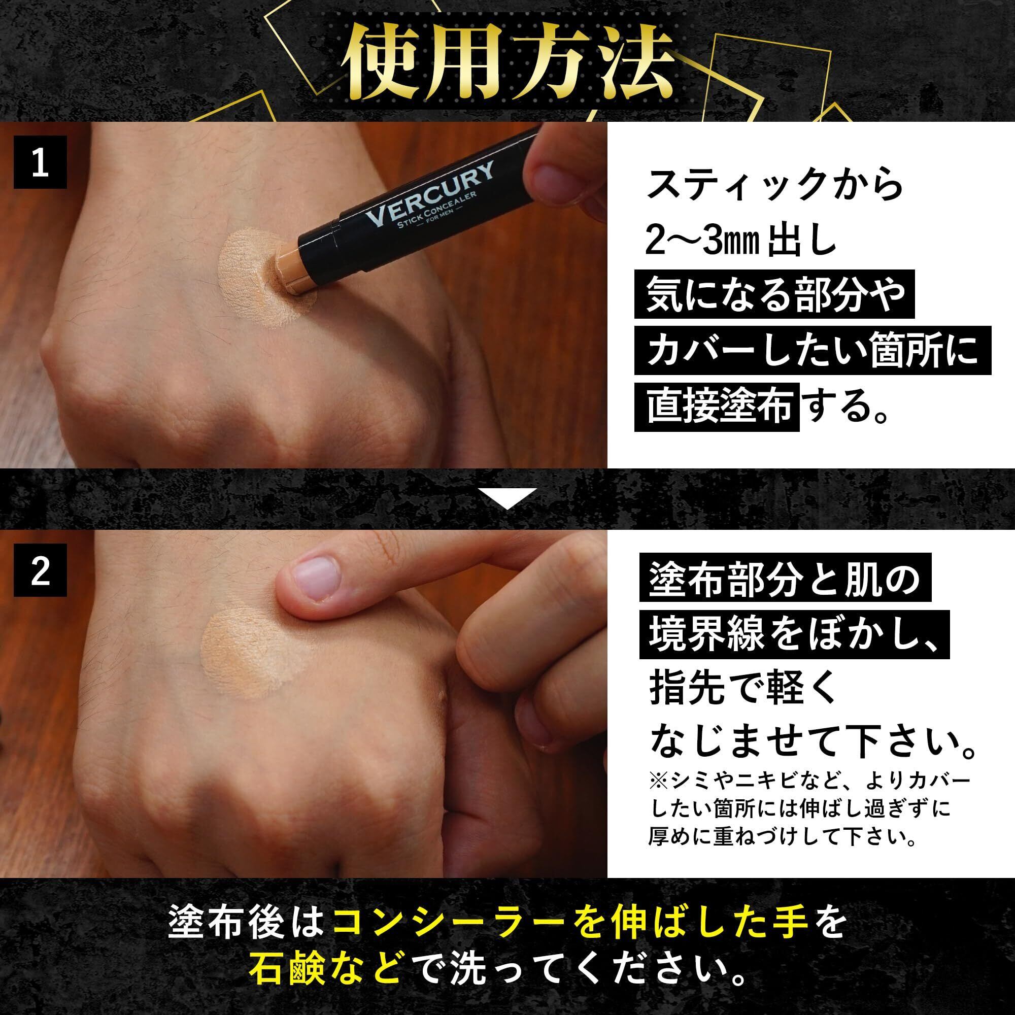 【初めてでも簡単!スティック状で手軽に美肌へ】 このメンズコンシーラーはスティック状に設計されているため、気になる部分に直塗りできるのが特徴です。ノンストレスで、短時間で最高のカバー力を実現。忙しい毎日でも、美しさを手に入れる時間を作ることができます。