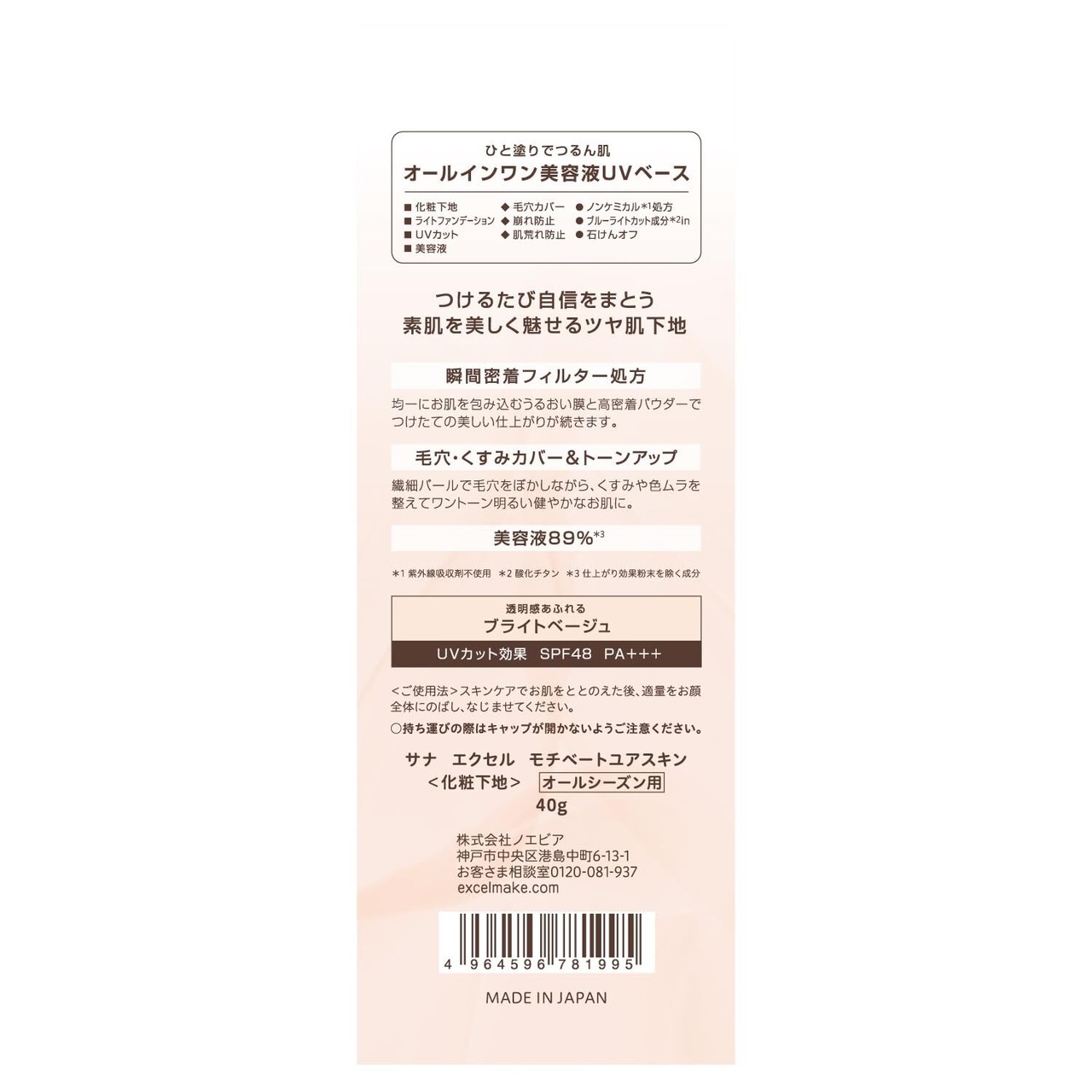 excel(エクセル) モチベートユアスキン SPF48 PA+++ オールインワン 美容液 UV 化粧下地