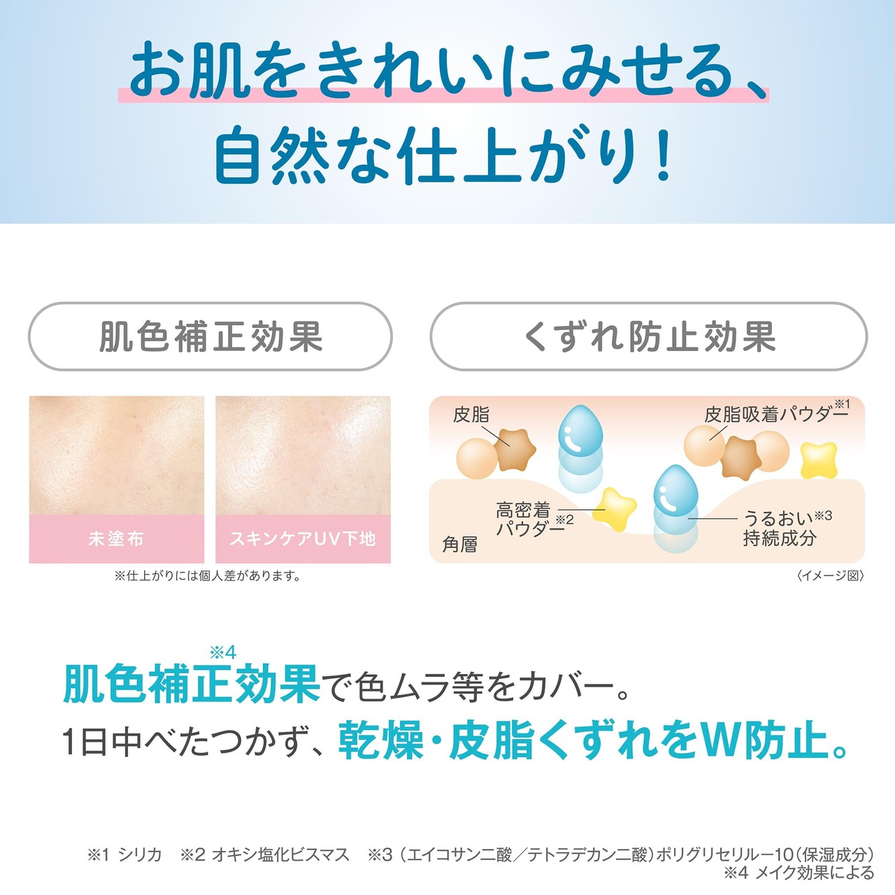 美容液で肌をまもる下地 豆乳スキンケア市場+第1位 色ムラ・くすみ補正※3 乾燥・テカリくずれ防止 ※3 メイク効果による +豆乳成分配合のセルフスキンケア市場 店頭売上金額2023年小売店5社POSデータ 保湿ケア □ノンケミカル※1 □低刺激 石けんオフ 豆乳の保湿美容液下地 美容液生まれのUV下地で日中もお肌を守りながらうるおい満ちたお肌へ。 ○キメを整えてお肌を守るオリジナル成分 高純度豆乳イソフラボン ふくゆたか使用豆乳発酵液(すべて保湿成分) ○乾燥からバリア 3種の※2セラミド グリチルリチン酸2K※3 エクトイン※3 ビタミンE※4 1日中べたつかず、乾燥・皮脂くずれをW防止 8時間化粧持ちデータ取得済み※5 高密着パウダー※6 皮脂吸着パウダー※7 うるおい持続成分※8 美容液成分※9 87% オールインワン 洗顔後これ1つでOK! SPF45 PA+++ ブルーライトカット成分※10in ※1 紫外線吸収剤不使用 ※2 セラミドNG、セラミドNP、セラミドAP(すべて保湿) ※3 保湿 ※4 トコフェロール(製品の抗酸化成分) ※5 当社調べ 仕上がりには個人差があります。(ツヤ・透明感・毛穴目立ちのなさ・薄れのなさ) ※6 オキシ塩化ビスマス ※7 シリカ ※8 (エイコサン二酸/テトラデカン二酸)ポリグリセリル-10(保湿) ※9 保湿成分(油性・水性)、水 ※10 酸化チタン ●パッチテスト済み ●アレルギーテスト済み ●ノンコメドジェニックテスト済み (すべての方に皮フ刺激やアレルギーが起きない、また、ニキビのもとができないわけではありません。)