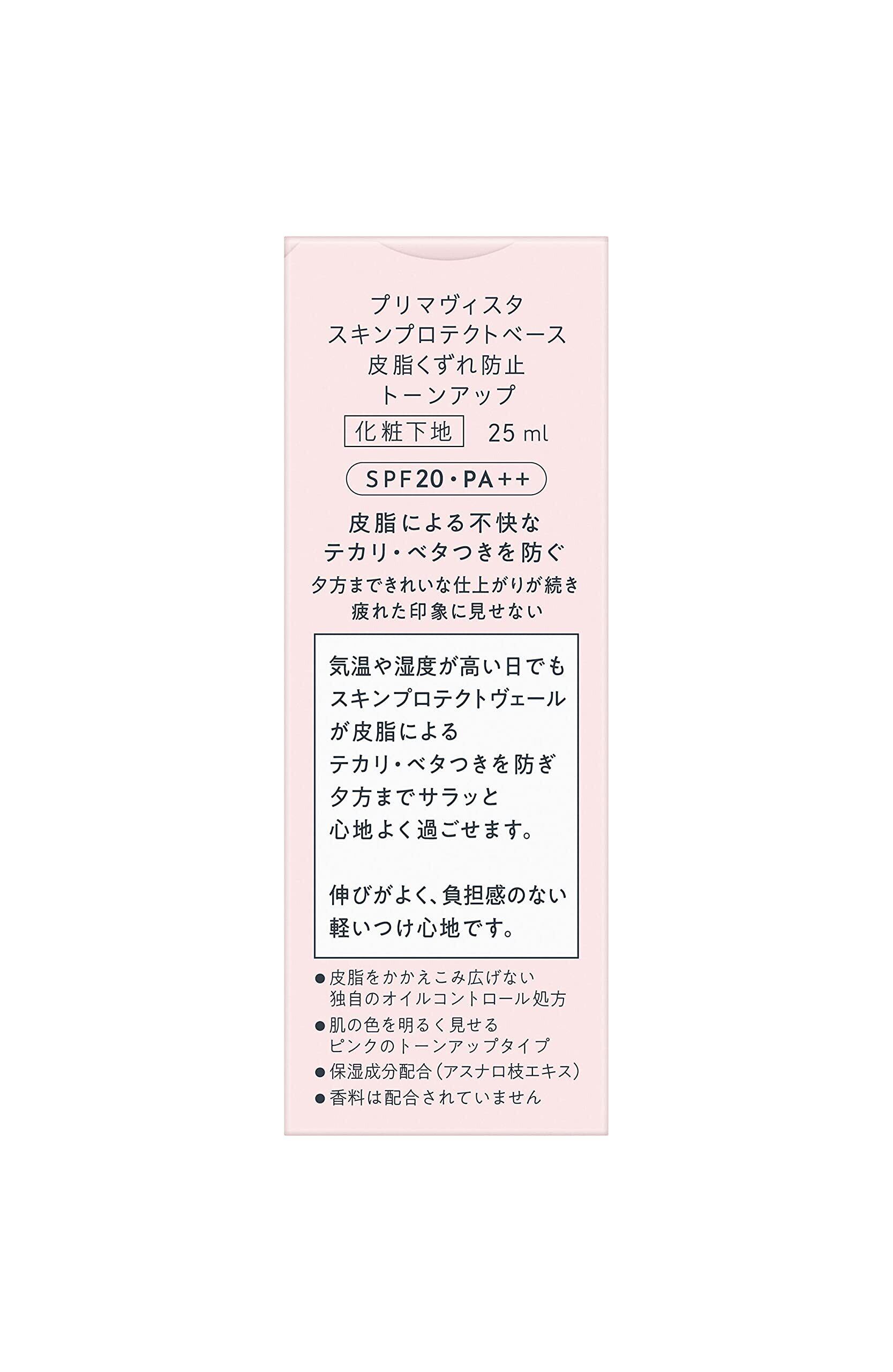皮脂による不快なテカリ・ベタつきを防ぐ 夕方まできれいな仕上がりが続き疲れた印象に見せない 気温や湿度が高い日でもスキンプロテクトヴェールが皮脂によるテカリ・ベタつきを防ぎ夕方までサラッと心地よく過ごせます。 伸びがよく、負担感のない軽いつけ心地です。 ● 皮脂をかかえこみ広げない独自のオイルコントロール処方 ● 肌の色を明るく見せるピンクのトーンアップタイプ ● 保湿成分配合(アスナロ枝エキス) ● 香料は配合されていません ○ アレルギーテスト済み すべての方にアレルギーがおこらないというわけではありません。