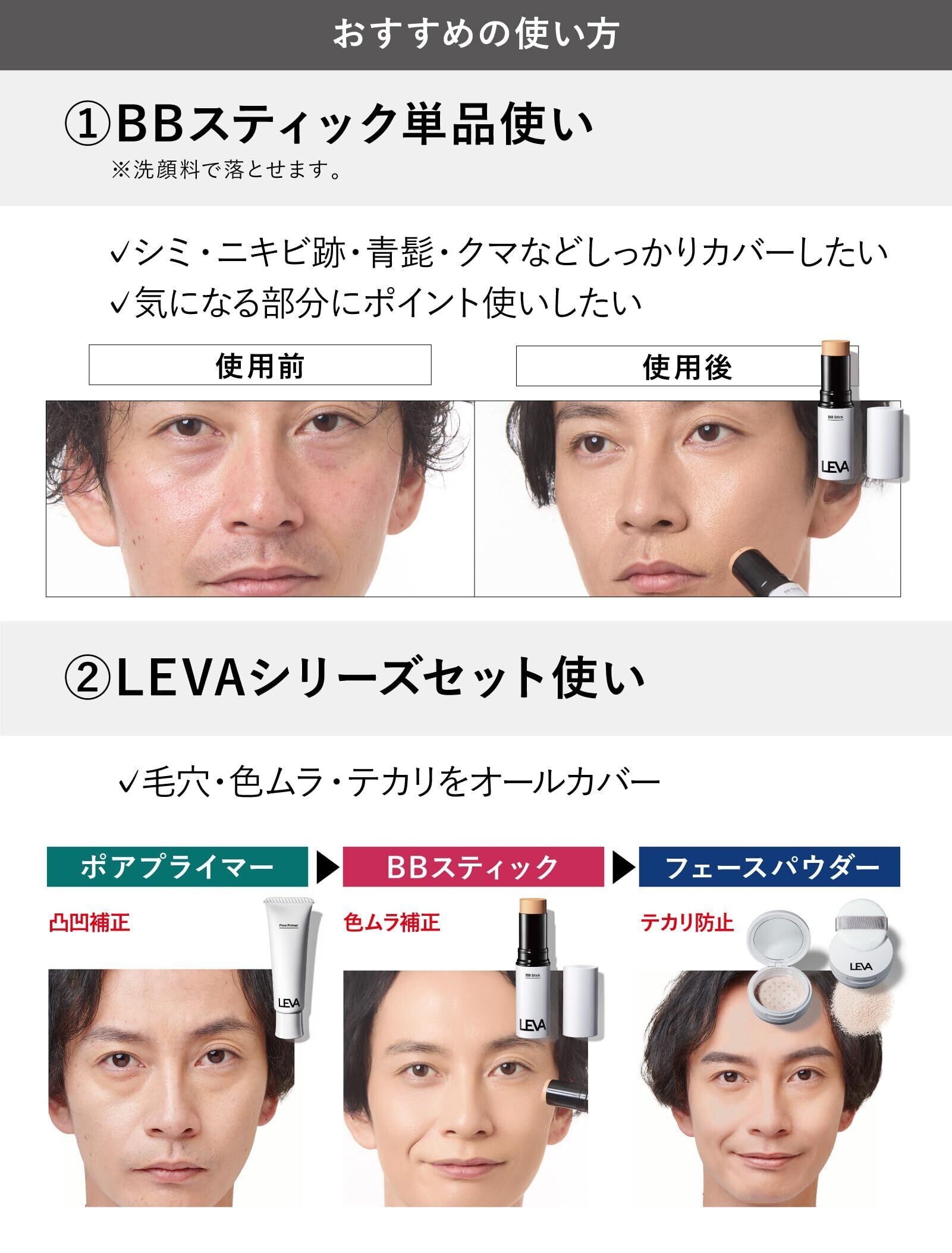 LEVA(レヴァ) BBスティック ベージュ簡単 悩みカバー メイク初心者 時短 テクニック不要 直接塗るだけ (クマ 毛穴 ニキビ跡 青ひげ 肌色補正) SPF47 PA++++ 就活の身だしなみ 洗顔料で落とせる メンズbb