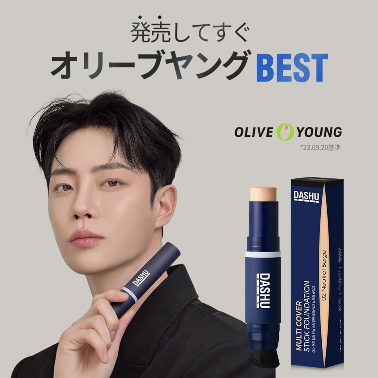 Dashu(ダシュ) メンズ マルチカバー スティックファンデーション ニキビ跡 毛穴 クマ シミ 隠し プライマー コンシーラー BBクリーム 日焼け止め SPF50+/PA++++ (Light Beige, 12g)
