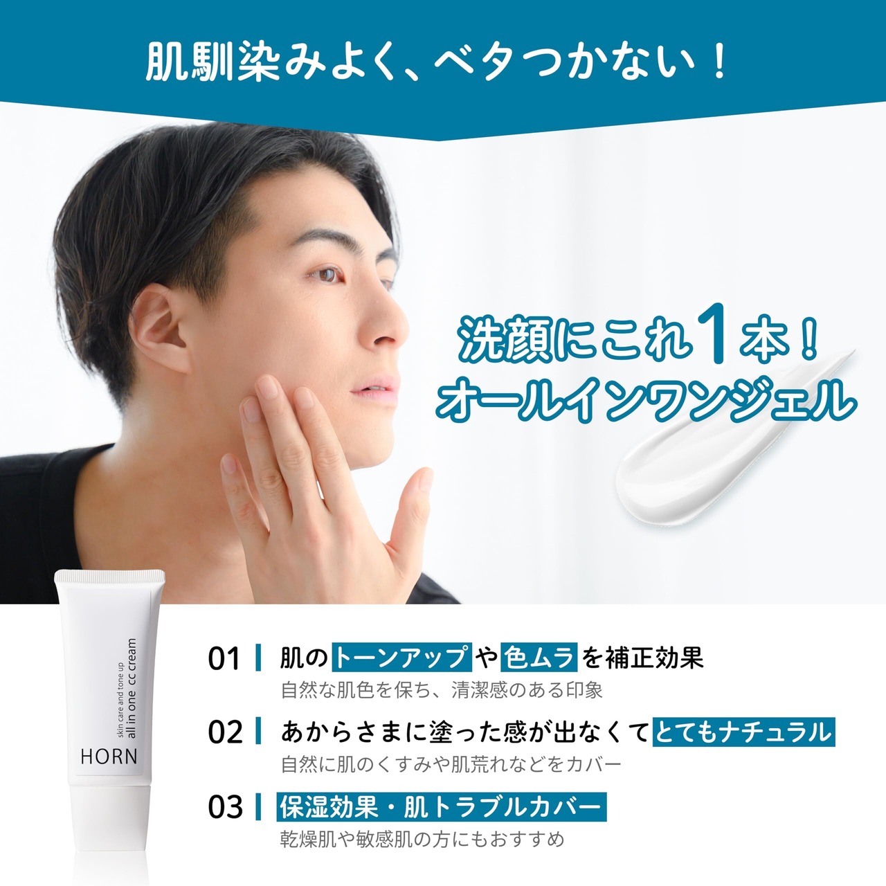 【ナチュラルな仕上がり】HORN(ホルン) オールインワンCCクリーム ほのかに広がるベルガモットの香り 50g メンズケア スキンケア 時短ケアクリーム 5役(化粧水、乳液、保湿クリーム、美容液、化粧下地) トーンアップ 肌トラブルケア ナチュラルな仕上がり