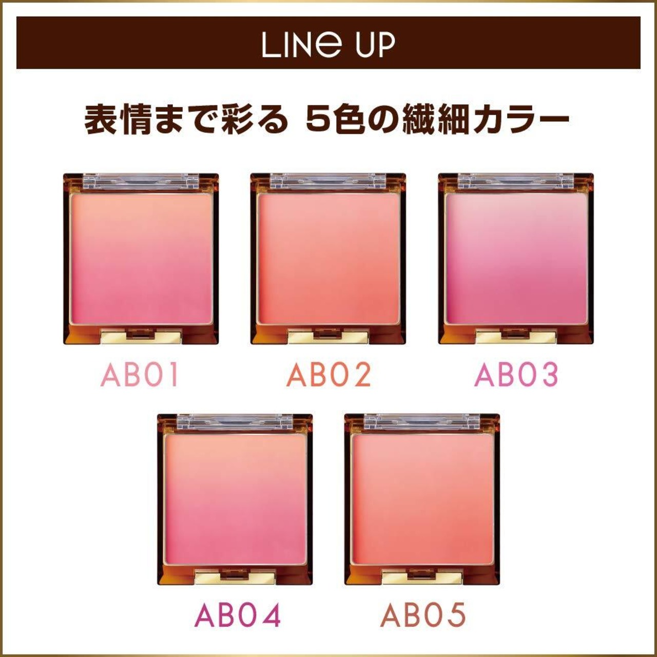 頬にふわり、オーラをまとう。色とツヤが溶け合う美発色チーク。【Quality】2つの血色カラー×艶めきハイライトの絶妙ニュアンスグラデーション。高発色&高密着でつけたてのカラーをキープするピュアカラーキープ処方。お肌のうるおいを守る美容液成分in。肌当たりなめらかなオリジナルブラシ付き。ブラシ用中皿付きのスリムなコンパクト。AB02(アプリコットジャム):甘くヘルシーなコーラルオレンジ