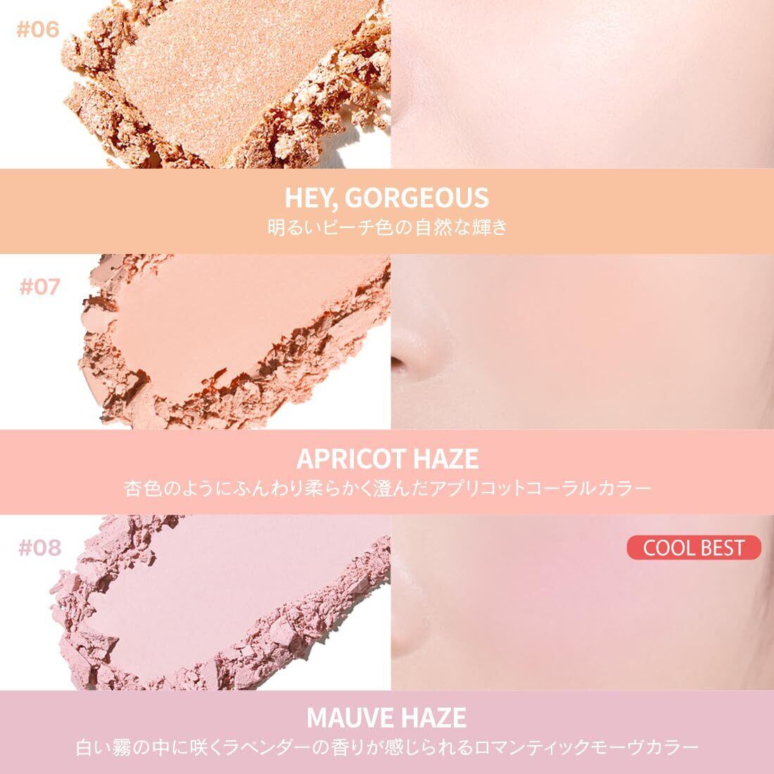 【澄んだ透明なチーク】なめらかなベルベッドパウダーが綿密に密着し、ダークニングのない澄んだカラーが長時間キープされます。