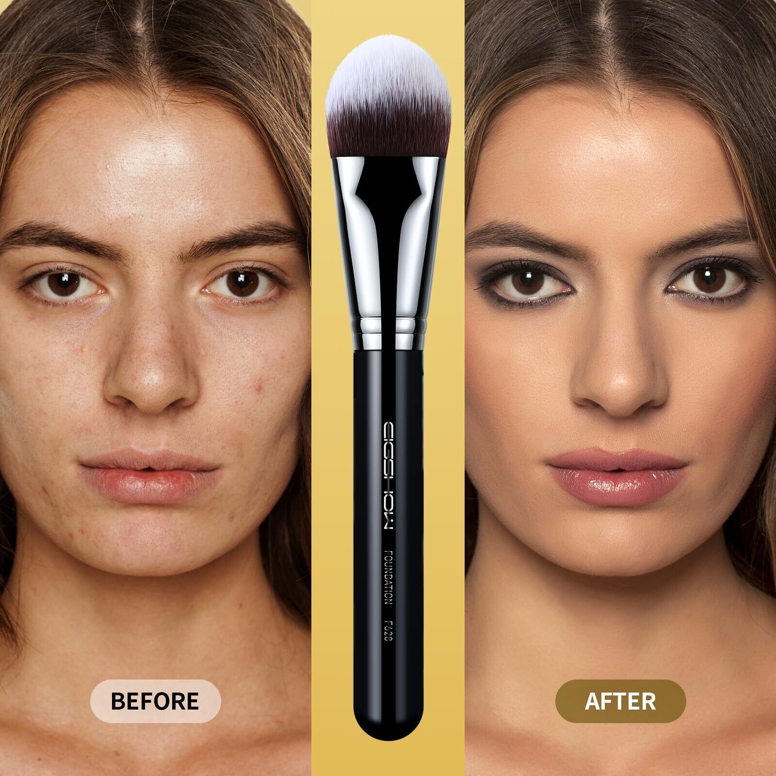 EIGSHOW ファンデーション ブラシ、液体用フラット ファンデーション メイクアップ ブラシ、クリーム アプリケーション、合成毛付きフェイス コンター コンシーラー ブラシ (F628)