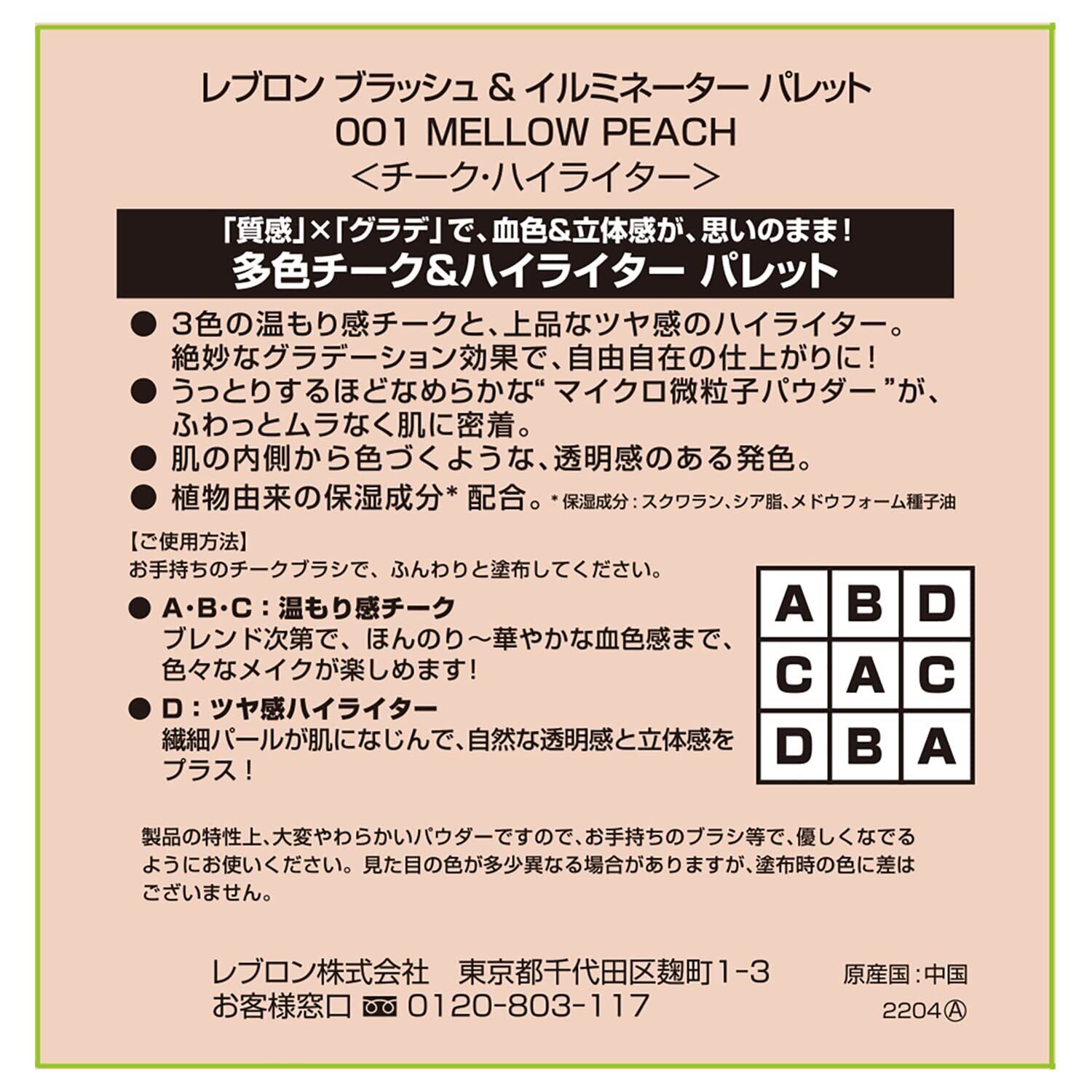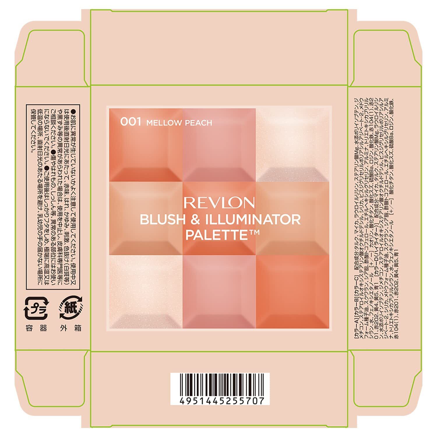レブロン ブラッシュ & イルミネーター パレット 001 メロウ ピーチ 日本企画 チーク&ハイライター 肌を明るく見せるフレッシュなピーチ系 8.5g