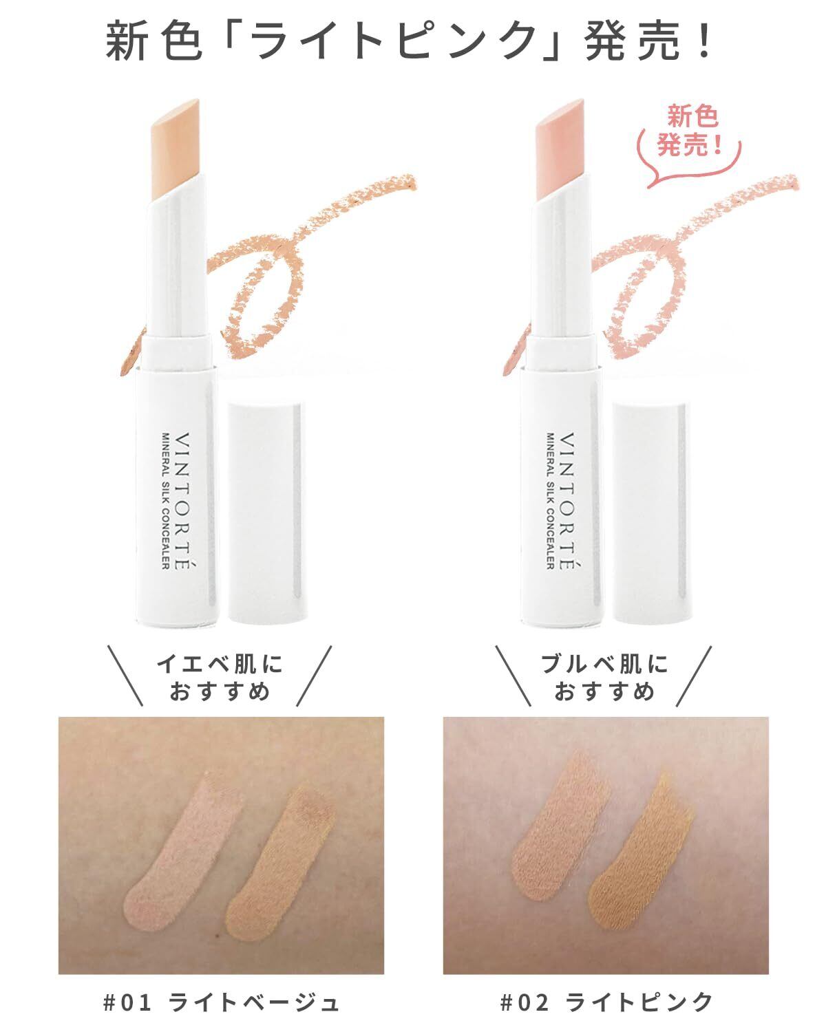 VINTORTE ミネラル シルク コンシーラー スティック しみカバー 毛穴隠し くま消し concealer シミ隠し コンシーラースティック ファンシーラー 化粧直し 敏感肌 石鹸で落とせる オレンジ ライトベージュ