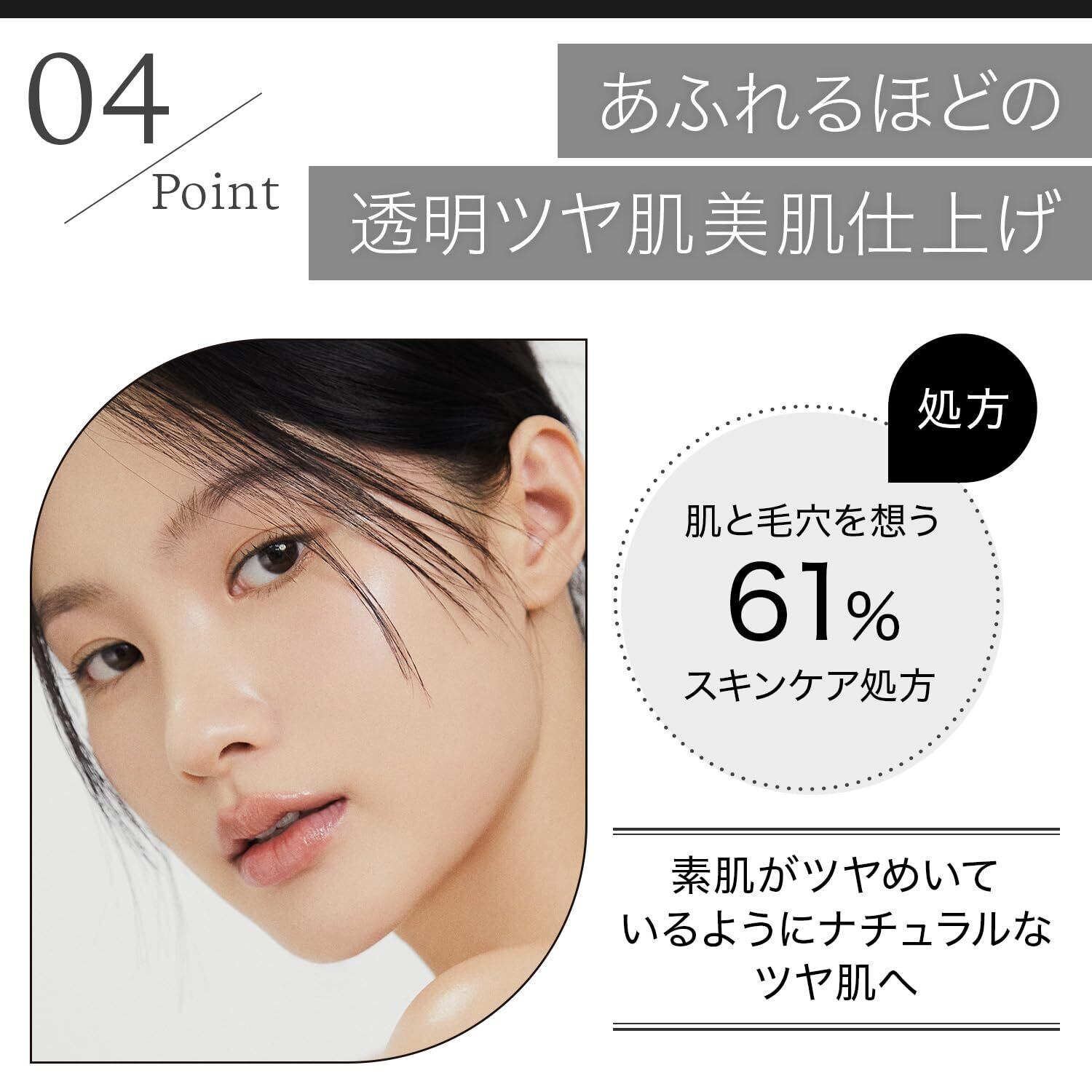 あふれるほどの透明ツヤ美肌仕上げをさらに強化。透明ツヤ美肌仕上げをさらに高めるべく、新たに 2 種のグローポリマー*を配合。肌表面を覆い、みずみずしい輝きを演出します。さらに、肌と毛穴を想う 61%スキンケア処方によって、素肌がツヤめいているようにみずみずしくナチュラルな、バイユアだけのツヤ肌をお楽しみいただけます。*ダイマージリノール酸ダイマージリノレイル、ポリフェニルシルセスキオキサン