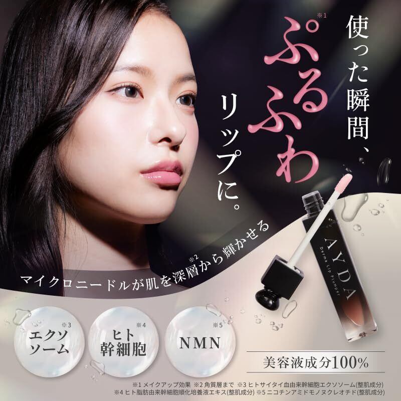 AYDA(エイダ) ダーマリッププランパー5ml 美容液成分100% NMN エクソソーム ヒト幹細胞 マイクロニードル リッププランパー リップ下地 リップグロス リップ 保湿