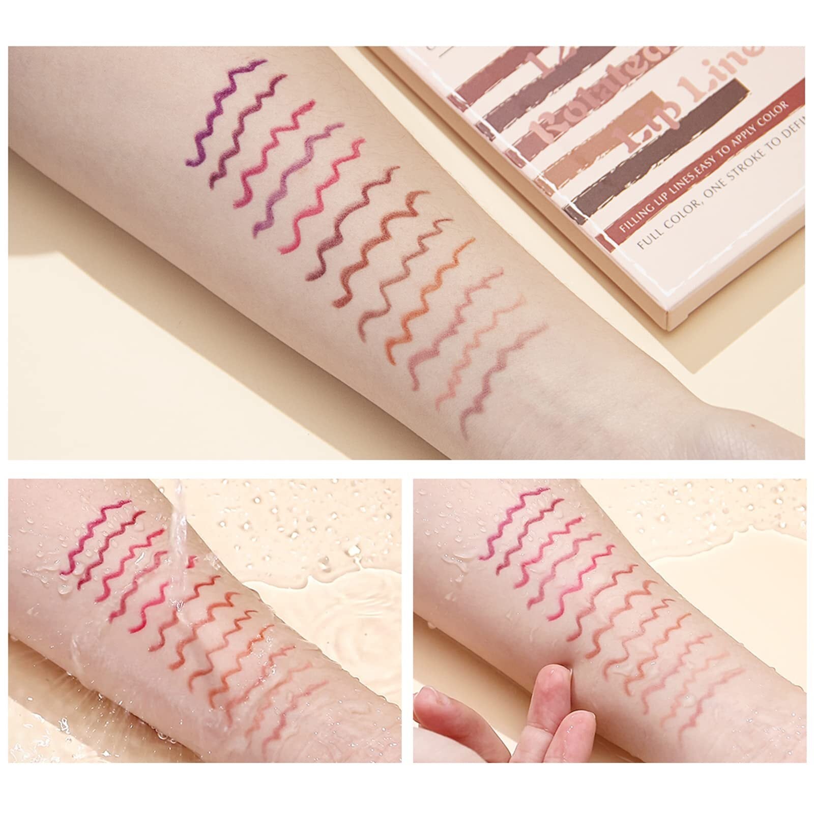 12色リップライナーペンシルセット高顔料防水ナチュラルベルベットリップメイクアップソフトペンシル長続きマット滑らかな極細リップライナー