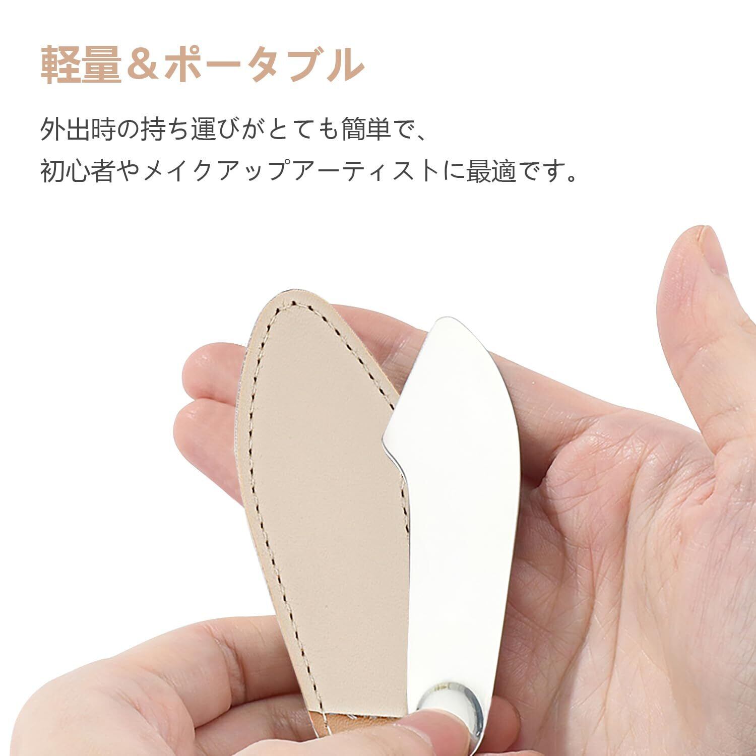 滑らかなデザインで、肌を傷つけない。両端とも良い応用が得られる。クリームをすくったり、ファンデーションを塗ったりするのに使えます。化粧の手伝いです。
