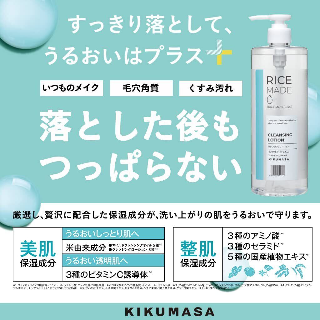 菊正宗 Rice Made+(ライスメイドプラス) クレンジングローション RN 500ml ふき取り W洗顔不要