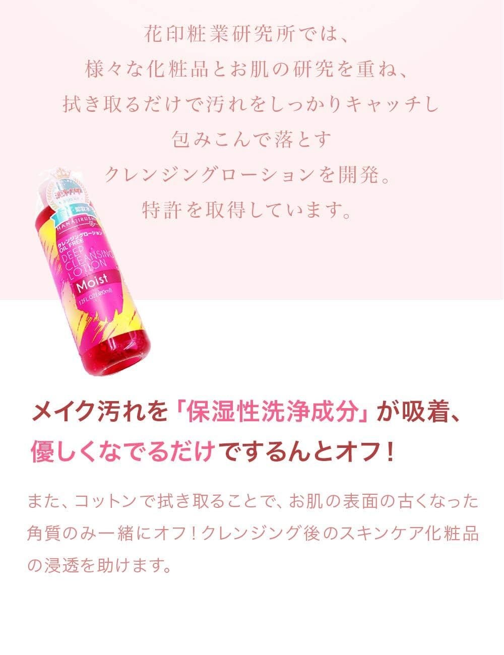 花印 拭き取りクレンジングローション380ml <モイスト>メイク落としウォーター 毛穴·角質クリア 乾燥敏感肌用 水クレンジング 無香料 メイクアップリムーバー