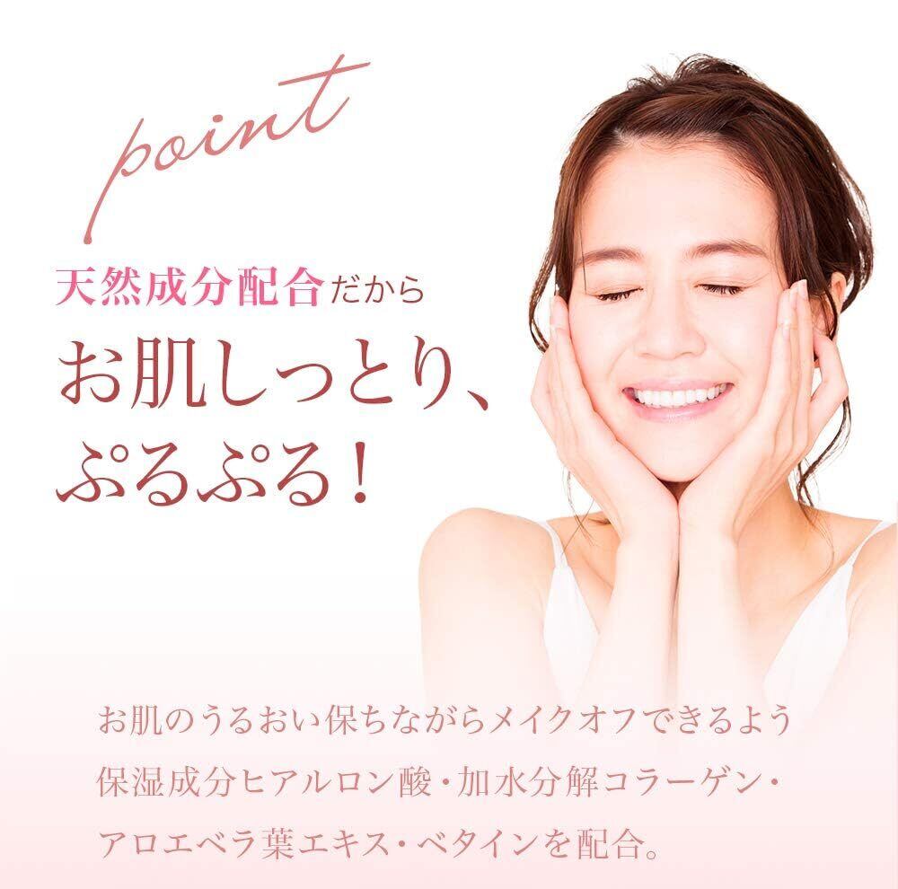メイク落としとしてだけではなく、朝の拭き取り洗顔としても最適です。 厳選された保湿成分がたっぷり配合のため、お肌に拭き取りながら、水分を角質層までに注ぎ、潤いをしっかり閉じ込め、しっとりした透明感あふれる素肌へ。(※保湿成分:アロエベラ葉エキス、加水分解コラーゲン、ヒアルロン酸Na)クレンジングしながら肌の潤いを保ちます。