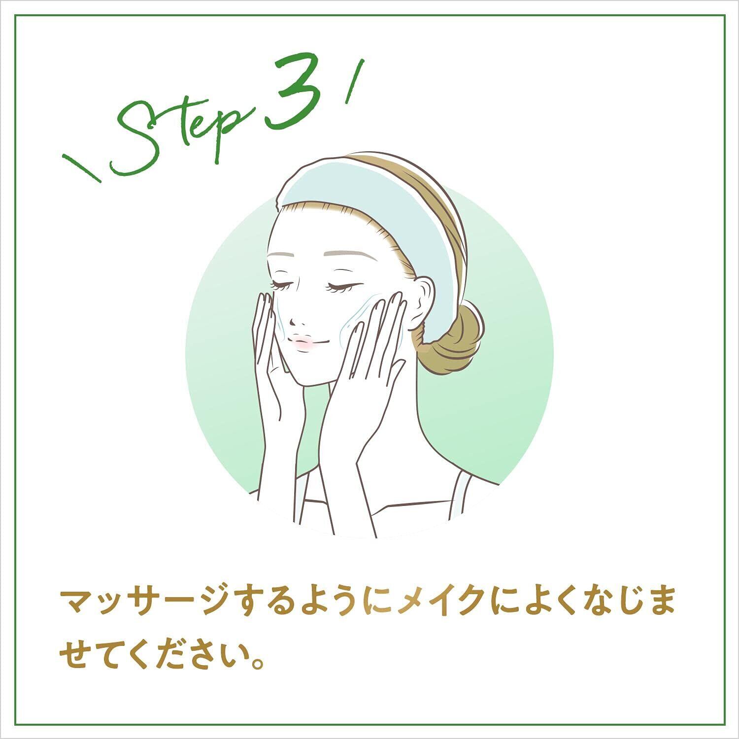 乾いた手肌に適量(専用スパチュラ1杯分)を取り、温めて柔らかくした後、マッサージするようにメイクによく馴染ませてください。その後、ぬるま湯でよく洗い流してください。ダブル洗顔不要です。