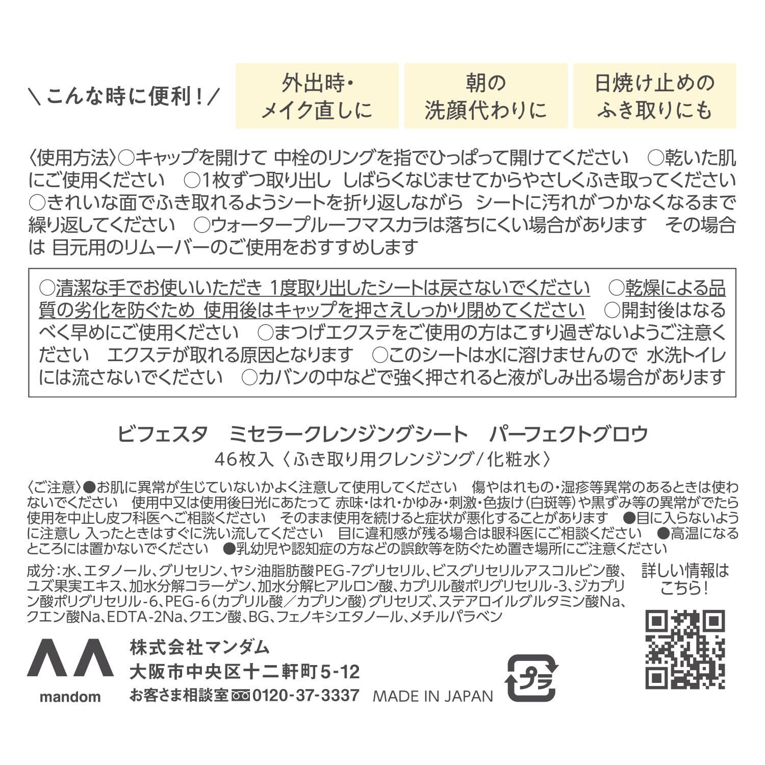 Bifesta(ビフェスタ) ミセラークレンジングシート パーフェクトグロウ[ メイク落とし 大判シート W洗顔不要] 46枚