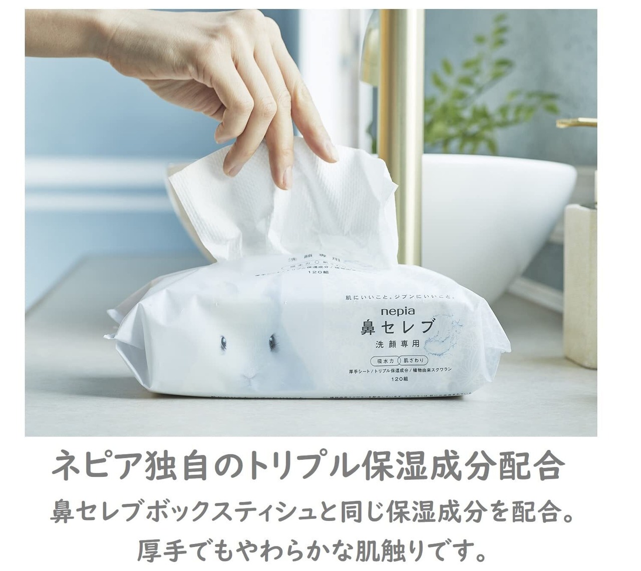 ネピア独自の「トリプル保湿」と「植物由来スクワラン」配合。