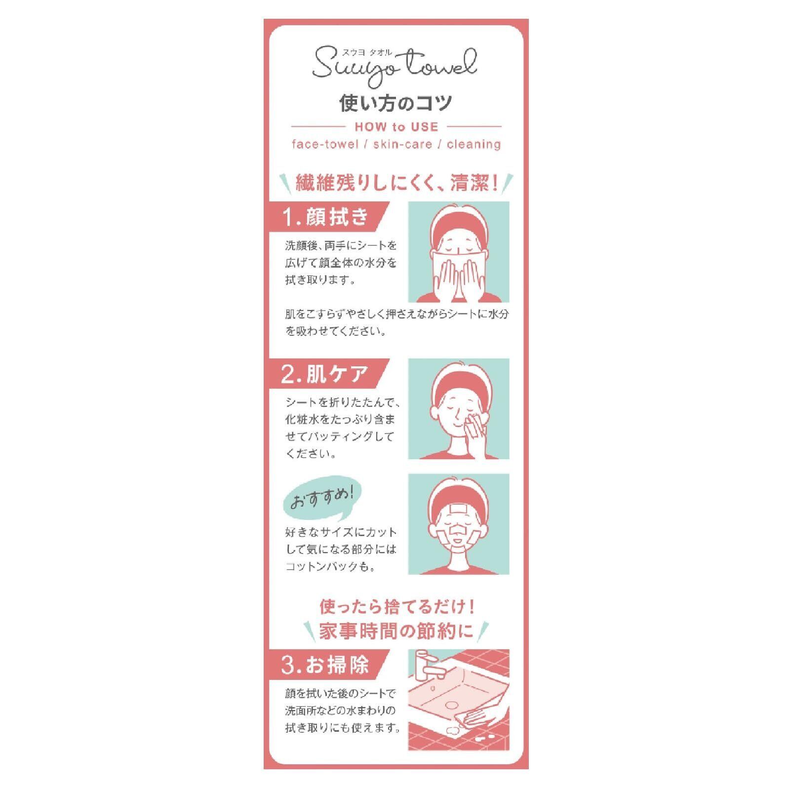 洗顔後、手洗い・うがいの後、お風呂上りのあとのフェイスタオル代わりに、いつでも清潔にご使用いただけます