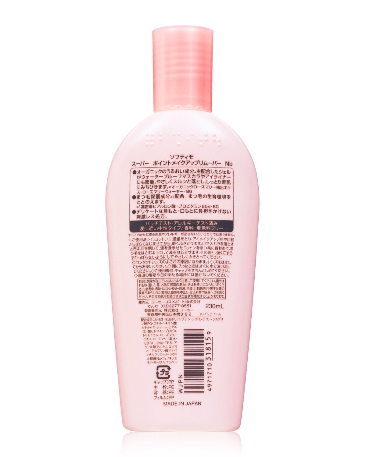 ソフティモ スーパー ポイントメイクアップリムーバー 230mL 目元・口元用 メイク落とし クレンジング + 鼻用角栓黒パック1枚おまけ付 KOSE
