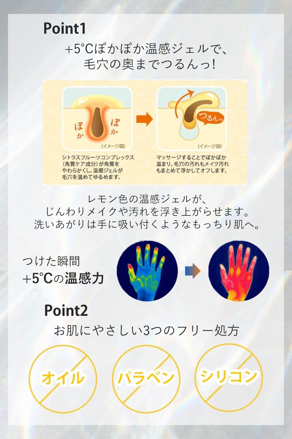 心地よい温感とこだわりのアロマで毛穴の奥からしっかりとメイクオフ。レモンジンジャーの香りでリラック効果も。クレンジング・洗顔・角質ケアもこれ一本でOK。