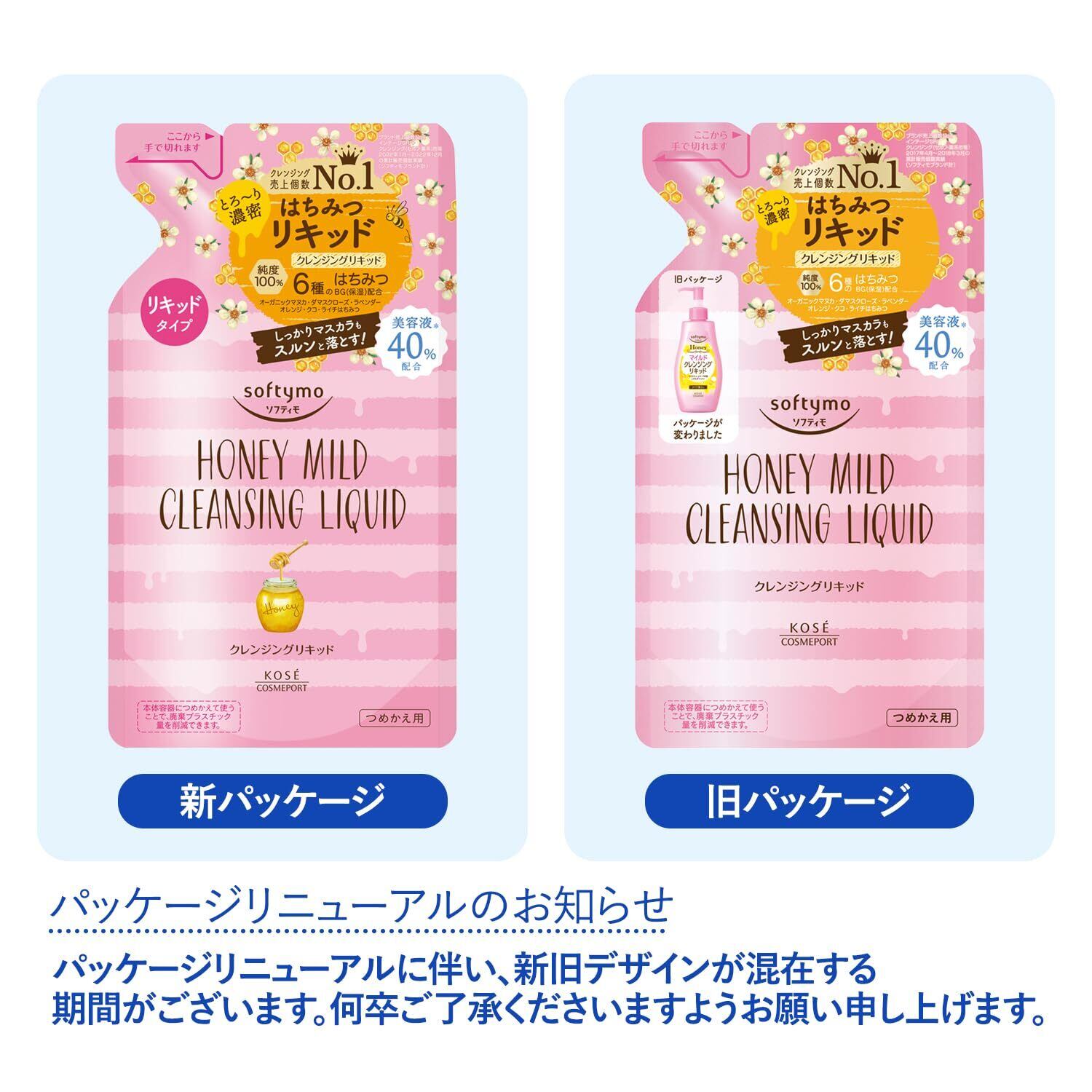 KOSE ソフティモ クレンジングリキッド (ハニーマイルド) つめかえ 200mL + 鼻用角栓パック1枚おまけ付