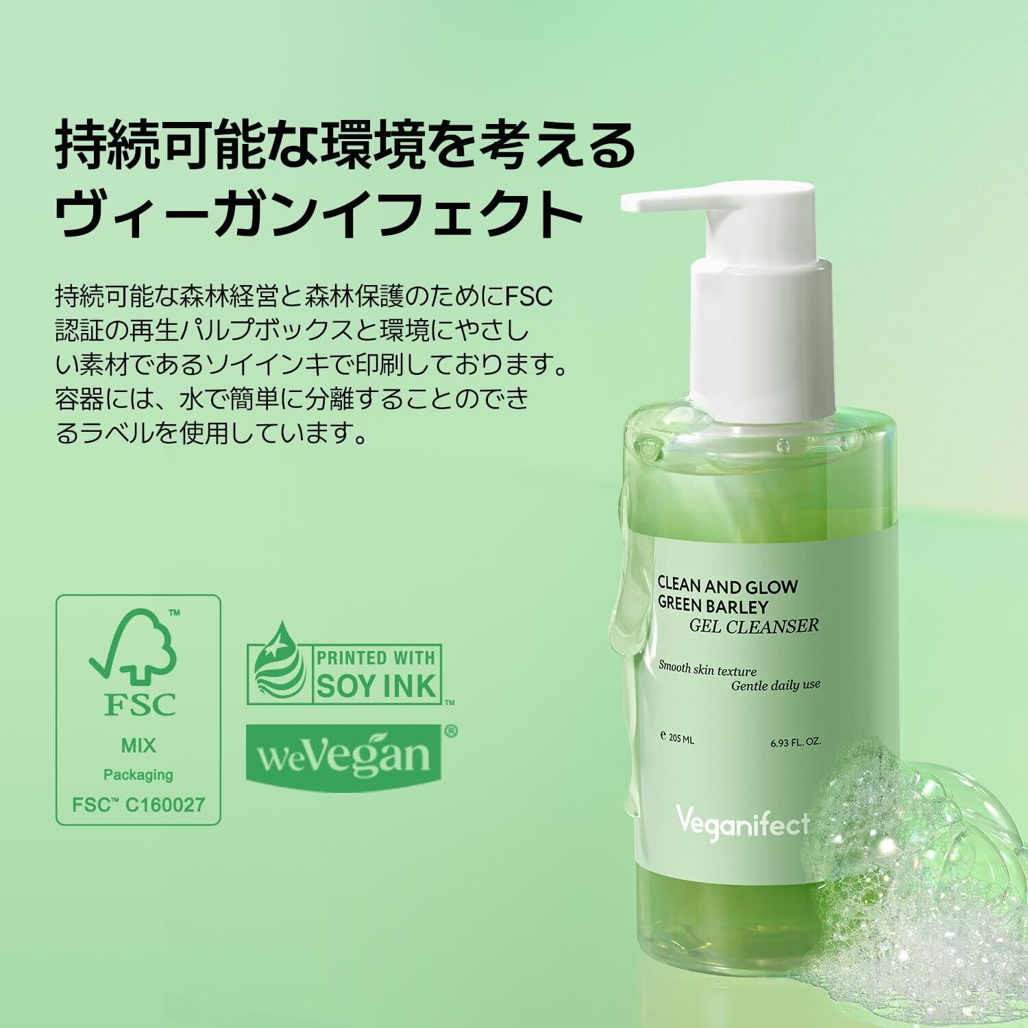 Veganifect公式(ヴィーガンイフェクト) クリーン&グロー 青麦クレンジングジェル 205ml / クレンジング/メイク落とし/クレンジングジェル/ジェルクレンジング/ヴィーガン/毛穴 クレンジング/毛穴ケア