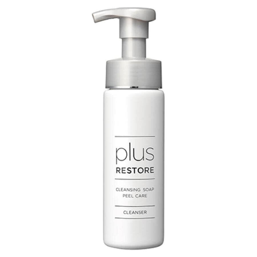 プラスリストア クレンジングソープ泡 ピールケア 200mL メイクも一度に落とせる泡状の洗顔料。メイク色素やファンデーションを選択して洗浄する キレート成分※1により、メイクと汚れを一度に落とします。特殊ポンプフォーマー採用することによりきめ細かい泡ができ、泡立て不足による肌への摩擦を軽減します。 グリコール酸、乳酸、サリチル酸など5つ※2の角質ケア成分や、グリチルリチン酸2K (整肌成分)を配合し、洗顔時に皮脂やメイク汚れとともに古い角質をスッキリと洗い流しやすくしました。肌のざらつきが気になる方におすすめです。 無香料・無着色・無鉱物油・パラベンフリー・アルコールフリー・石油系界面活性剤フリー ※1 テトラヒドロキシプロピルエチレンジアミン 洗浄成分 ※2 グリコール酸、乳酸、サリチル酸、リンゴ酸、酒石酸