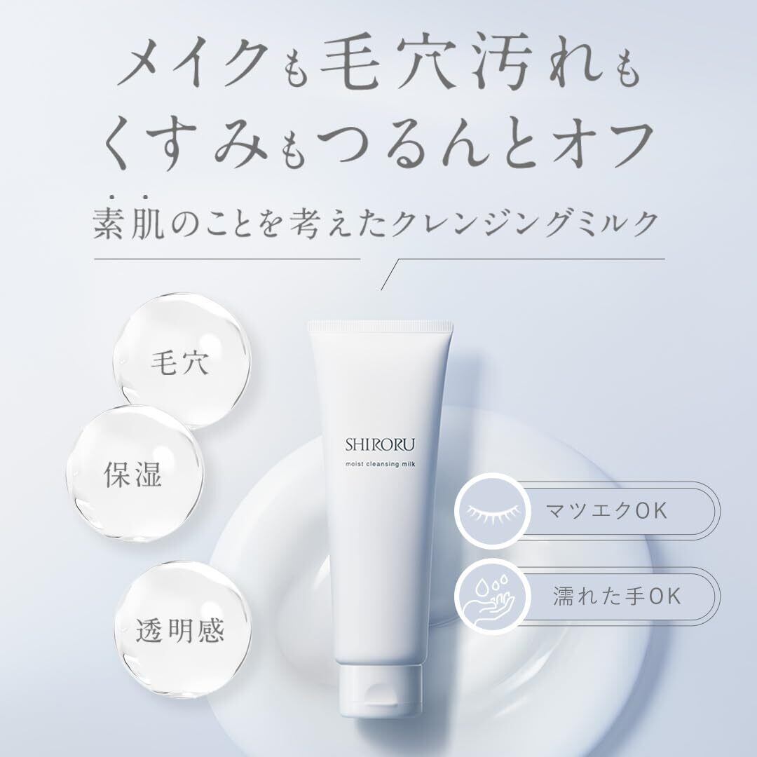 【SHIRORU】モイストクレンジングミルク 『美容保湿成分92.6%配合!洗い上がりしっとりなめらか肌へ』(クレンジング シロル メイク落とし うるおい 泡洗顔 保湿 毛穴 角栓 洗顔 敏感肌) (120g× 1本)