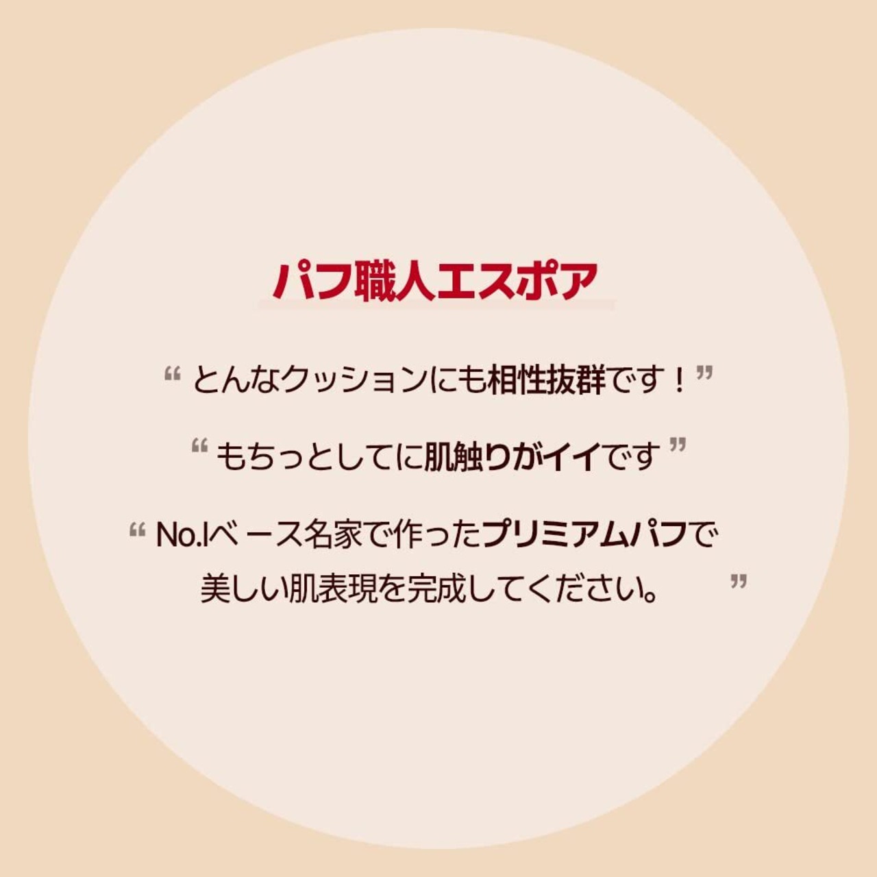 万能パフ: 本品はエスポアのクッションファンデーションだけでなく、パウダーファンデーションやリキッドファンデーションなど、あらゆるファンデーションの替えパフとしてお使いいただけます。(既存のソフトタッチエアパフと同じ素材で作られています。)